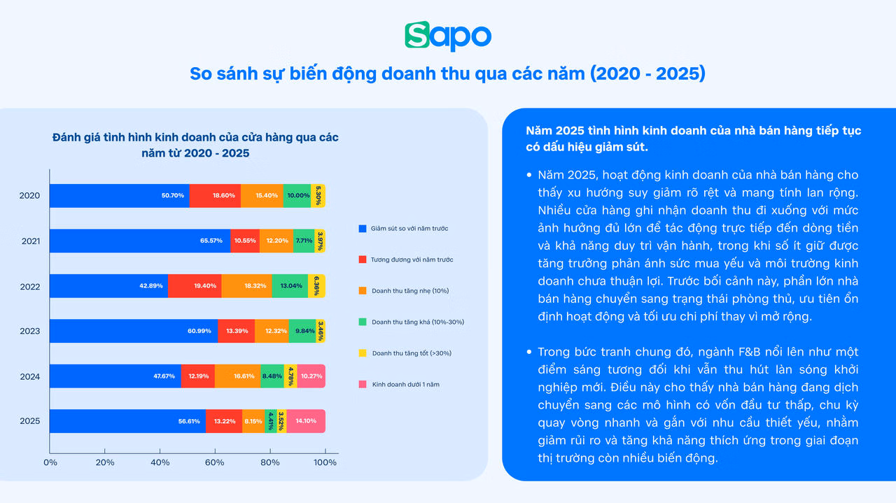 Bước sang năm 2026, thị trường bán lẻ Việt Nam sẽ chuyển từ giai đoạn mở rộng sang giai đoạn sàng lọc và chuẩn hóa. Khảo sát của Sapo cho thấy nhà bán hàng ngày càng thận trọng, ưu tiên duy trì và tối ưu hoạt động hiện tại hơn là tăng trưởng nóng.