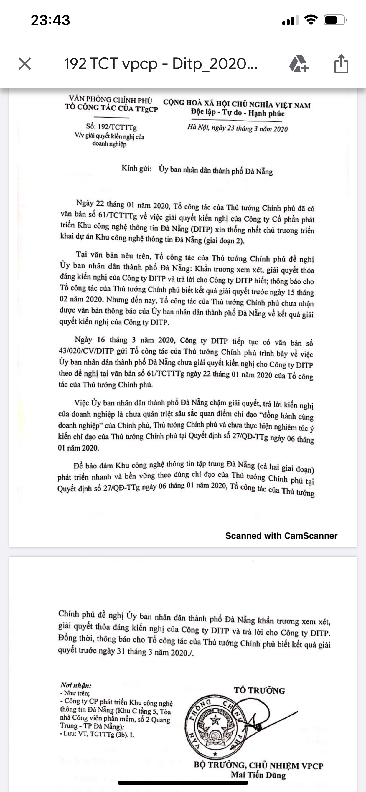 Ngoài ra, DITP cũng đã gửi 3 văn bản đến Văn phòng Chính phủ với nội dung đề nghị Chính phủ có ý kiến với UBND TP. Đà Nẵng để xúc tiến nhanh việc bàn giao đất cho Nhà đầu tư triển khai giai đoạn 2 theo Giấy chứng nhận đầu tư đã cấp. Tuy nhiên, hồi đáp lại đề xuất kiến nghị của Nhà đầu tư là 3 văn bản của Văn phòng Chính phủ gửi UBND TP. Đà Nẵng, nhưng đến nay Nhà đầu tư vẫn chưa nhận được ý kiến trả lời từ phía chính quyền địa phương này.