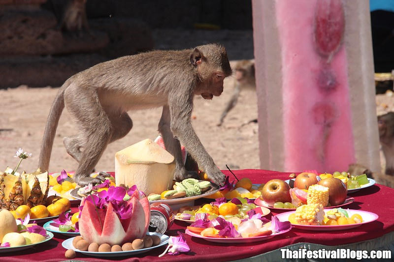 Lễ hội thường bắt đầu vào khoảng 10h với các buổi biểu diễn âm nhạc và điệu múa khỉ của con người. Sau bài phát biểu của Thống đốc Lopburi, những chú khỉ sau đó được mời xuống ăn ở các bàn ăn tự chọn.