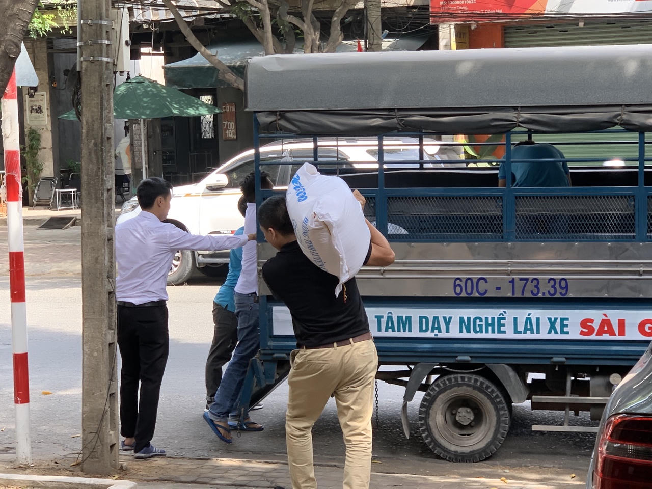 Được sự giúp đỡ, hỗ trợ tận tình của đội vận tải Trung tâm dạy nghề lái xe Sài Gòn, báo Pháp luật Việt Nam tiến hành vận chuyển, giao gạo đến Uỷ Ban MTTQ Việt Nam huyện Vĩnh Cửu số lượng 2 tấn gạo, đến điểm ATM gạo triển khai tại xã Phước Khánh 3 tấn gạo và “chợ 0 đồng” tại Long Thành 500 kg gạo nhằm chia sẻ khó khăn với bà con trên địa bàn.