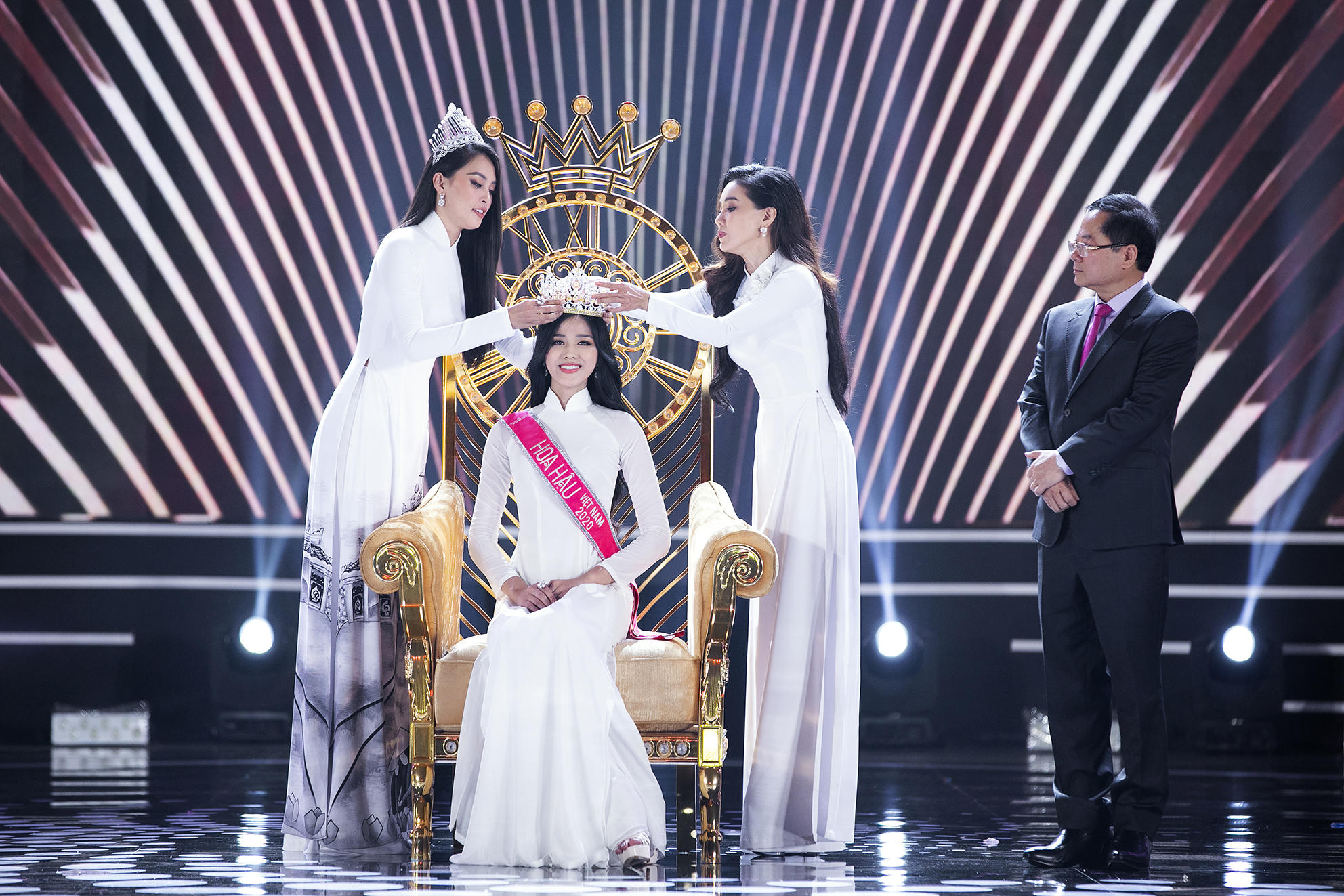 Tiểu Vy và phó BTC Phạm Kim Dung trao vương miện cho người kế nhiệm. Ngôi vị Tân Hoa hậu năm nay thuộc về cô gái đến từ Thanh Hoá Đỗ Thị Hà. Nhan sắc khả ái cùng học vấn của người đẹp sinh năm 2001 được công chúng đánh giá là phù hợp với danh hiệu cao quý này.