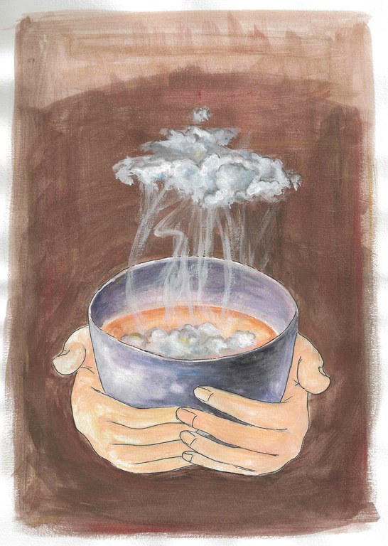 Không cần phải là thi sĩ mới thấy mình đang uống mây, mình chỉ cần là một thiền giả thôi. Khi nhìn vào nước trà mình thấy đây là cơn mưa, đây là đám mây và mình đang uống mây. Nước trà là sự tiếp nối của cơn mưa, cơn mưa là sự tiếp nối của đám mây và đám mây là sự tiếp nối của sức nóng mặt trời cùng nước ao, hồ, sông, biển. Luôn luôn có sự tiếp nối như vậy, gọi là luân hồi.