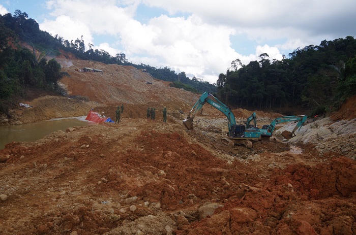 Các lực lượng đã đào nắn dòng chảy mới sâu hơn 3m, rộng 5m và dài hơn 150m. Với quyết tâm cao của các lực lượng, công tác khơi thông dòng chảy, ngăn đập nắn dòng đã hoàn thành. Các lực lượng chuyển qua giai đoạn tìm kiếm các nạn nhân dưới lòng sông. Lực lượng chó nghiệp vụ cũng đã sẵn sàng có mặt tại hiện trường để thực hiện tìm kiếm.