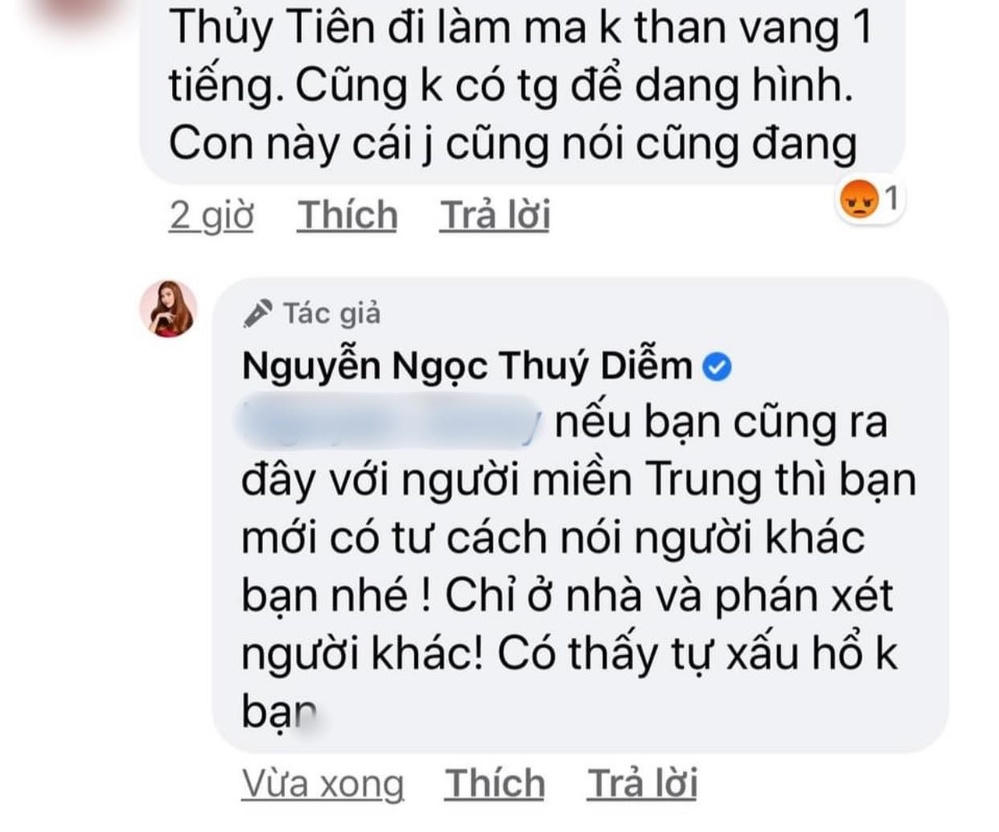Thúy Diễm đáp trả gay gắt tài khoản mạng trên.
