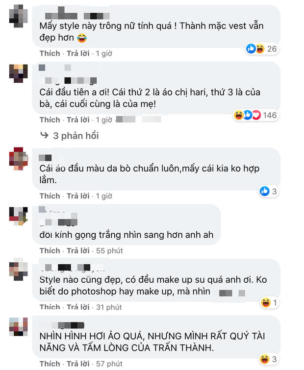 Trấn Thành vừa có màn trưng cầu ý fan về việc có nên đổi hình ảnh, phong cách hay không. Nam MC tung bộ ảnh thần thái, diện những chiếc áo khoác có diện mạo bóng bẩy, điệu đà. Trái ngược với kì vọng, hầu hết ý kiến đều khuyên anh nên suy nghĩ lại vì thấy không hợp và quá nữ tính. Thậm chí, nhiều người còn hài hước bình luận rằng Trấn Thành nên nhượng những món đồ hiệu này về tay bà xã thì hơn.