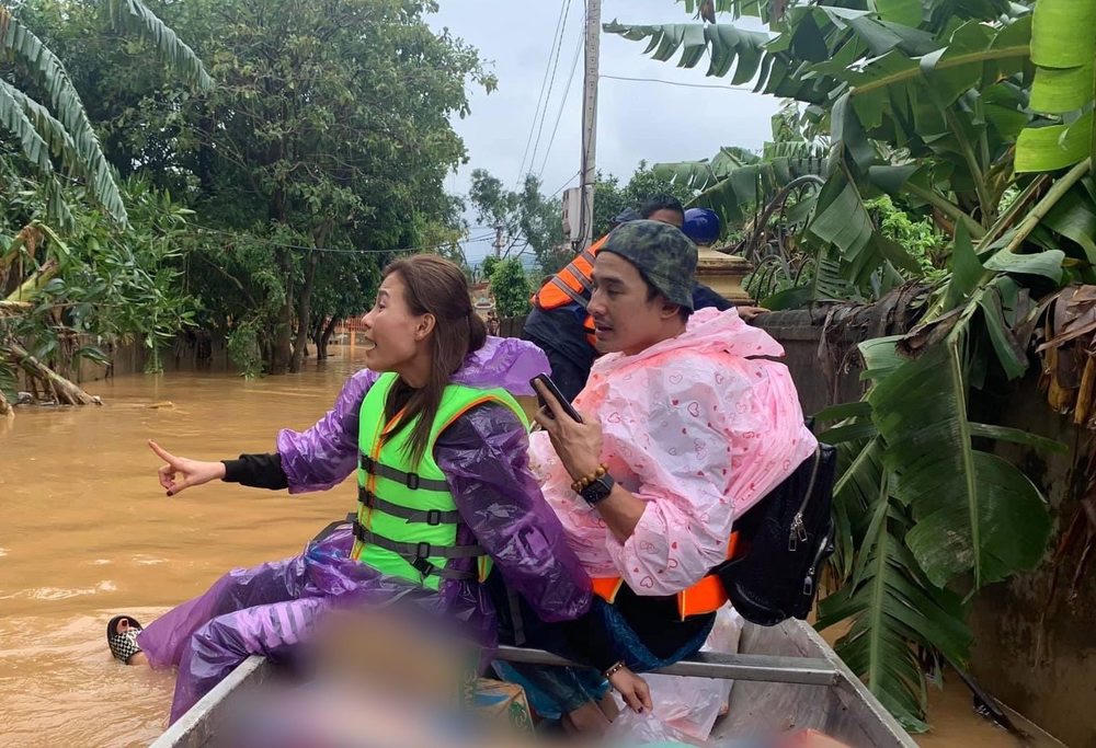 Vợ chồng Lương Thế Thành - Thúy Diễm bị lạc đoàn từ thiện ở miền Trung