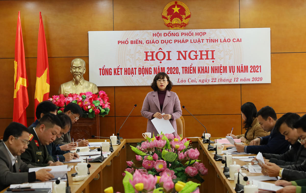 Phát biểu chỉ đạo tại Hội nghị, đồng chí Giàng Thị Dung, Phó Chủ tịch UBND tỉnh, Chủ tịch Hội đồng PBGDPL tỉnh ghi nhận những kết quả tích cực trong hoạt động của Hội đồng trong năm 2020. Sang năm 2021, Hội đồng cần tiếp tục quan tâm thực hiện một số nhiệm vụ trọng tâm nhằm triển khai hiệu quả hơn nữa công tác PBGDPL trên địa bàn.