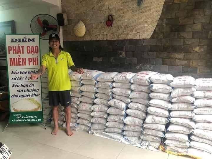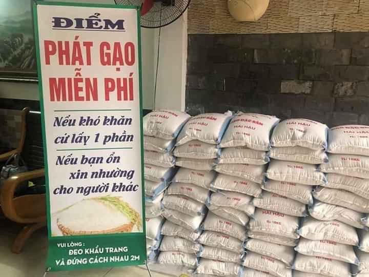 Điểm phát gạo miễn phí ghi rõ: Nếu khó khăn cứ lấy 1 phần, nếu bạn ổn xin nhường cho người khác. Chủ nhà cũng không quên dặn dò những người nghèo đến nhận gạo: “Đeo khẩu trang và đứng cách nhau 2m”. Chỉ trong vòng buổi sáng, 100 bao gạo đã được phát hết.