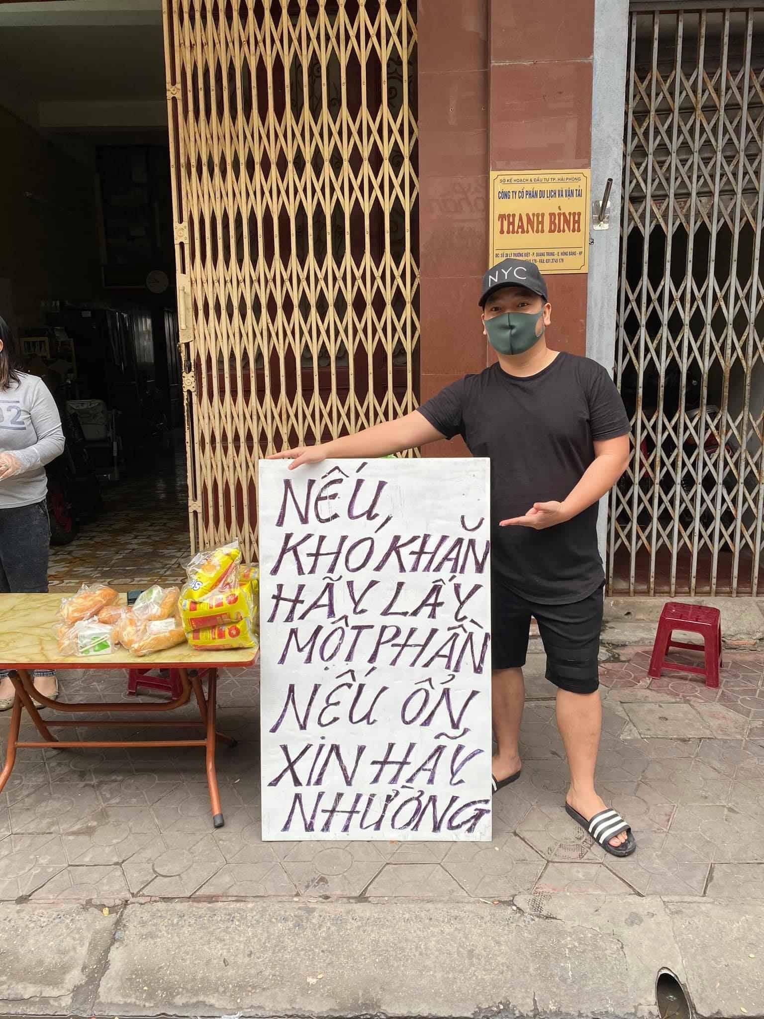 Những ai khó khăn có thể lấy 1 phần khi đi qua. Chủ nhà cũng rất ý thức phòng chống dịch khi chỉ đưa ra số lượng túi đồ ăn hạn chế để tránh phát sinh tụ tập đông người tại điểm phát này.