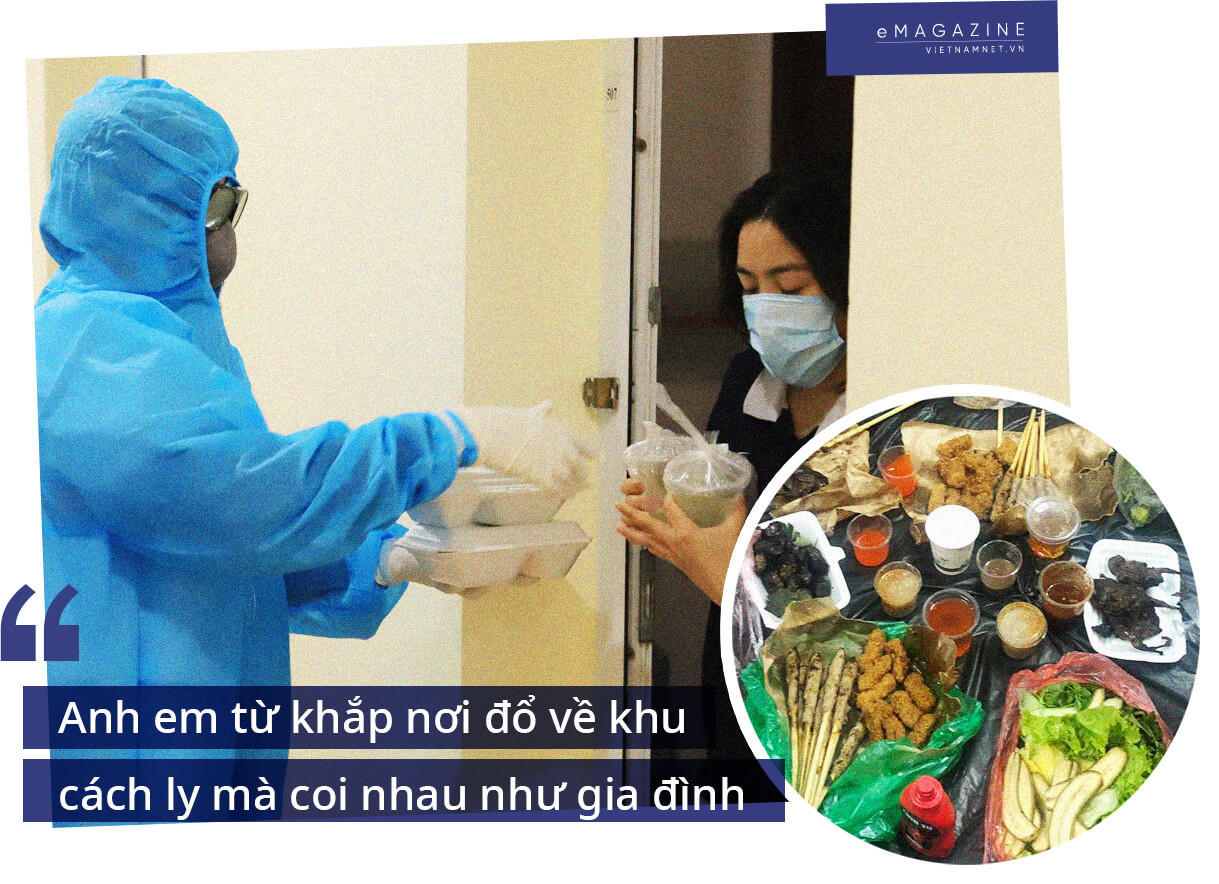 "Ăn uống được hỗ trợ miễn phí, muốn mua thêm gì thì gọi shipper và nhờ các chị bác sĩ nhận hộ. Anh em trong này đều vui vẻ, người từ khắp nơi đổ về mà coi nhau như gia đình. Ở đây vài ngày em còn gặp cả đồng hương, có người học cùng trường", Nam vui vẻ kể.