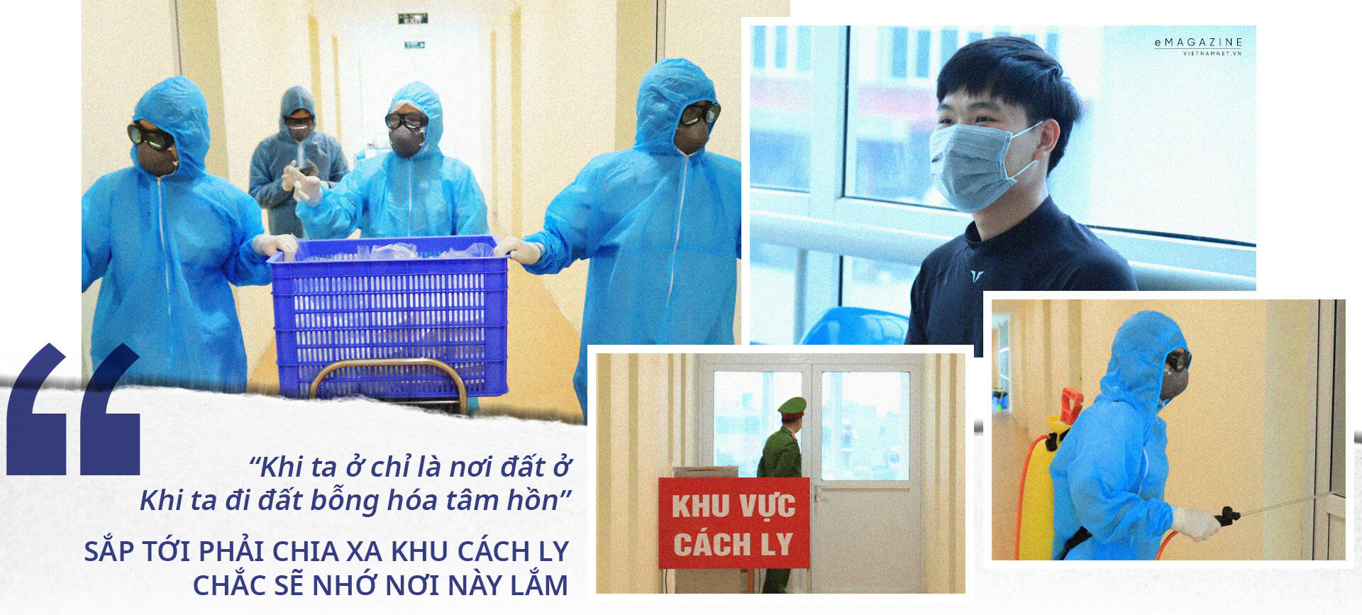 15h chiều, như thường lệ, từ tầng 4 bệnh viện các y bác sĩ lại chuẩn bị đến các phòng kiểm tra sức khỏe cho người cách ly. Khử trùng cẩn thận, mặc bộ đồ bảo hộ che kín từ đầu đến chân, đi qua tấm biển "Khu vực cách ly", 2 nhân viên y tế chậm rãi bước lần lượt vào các phòng.