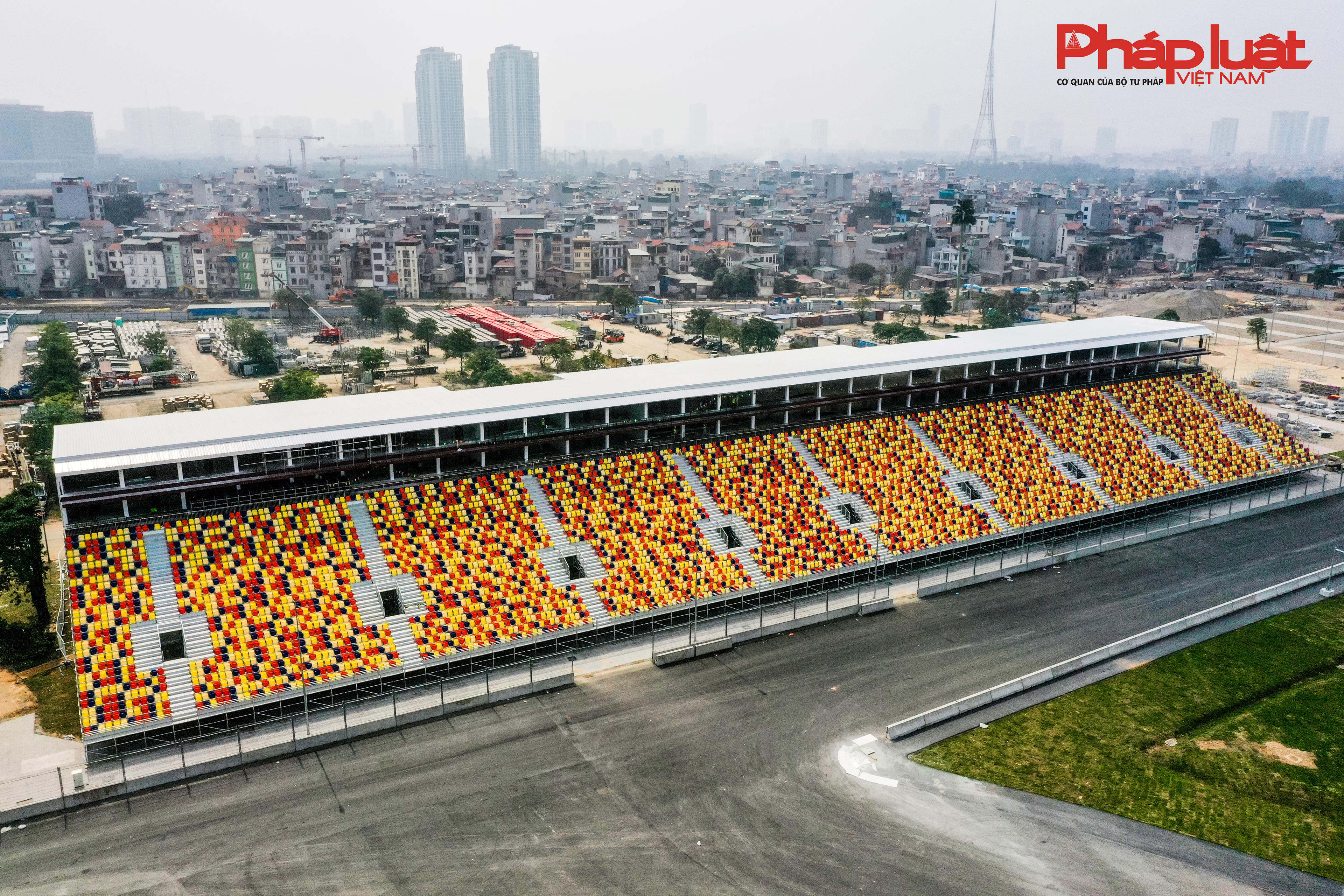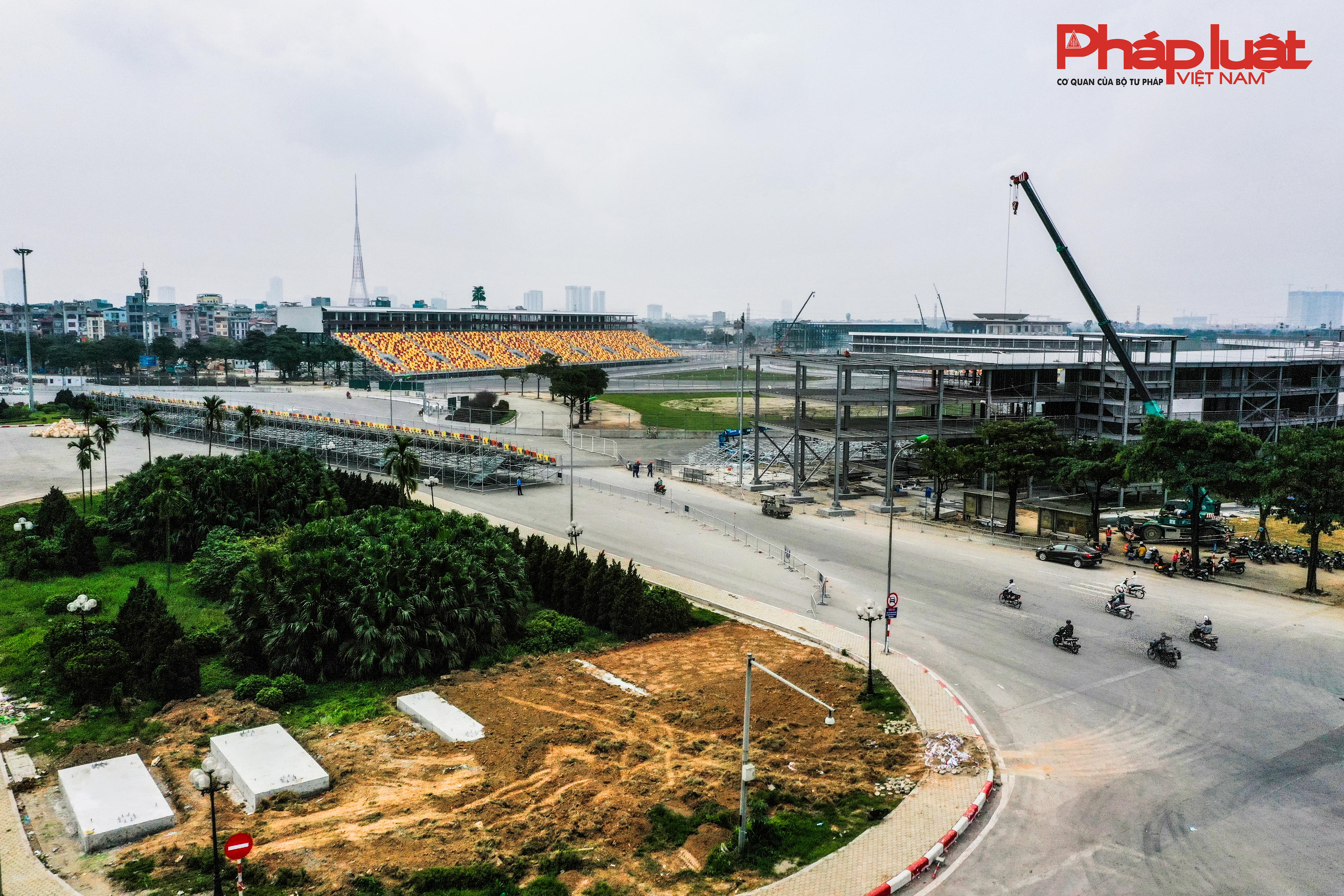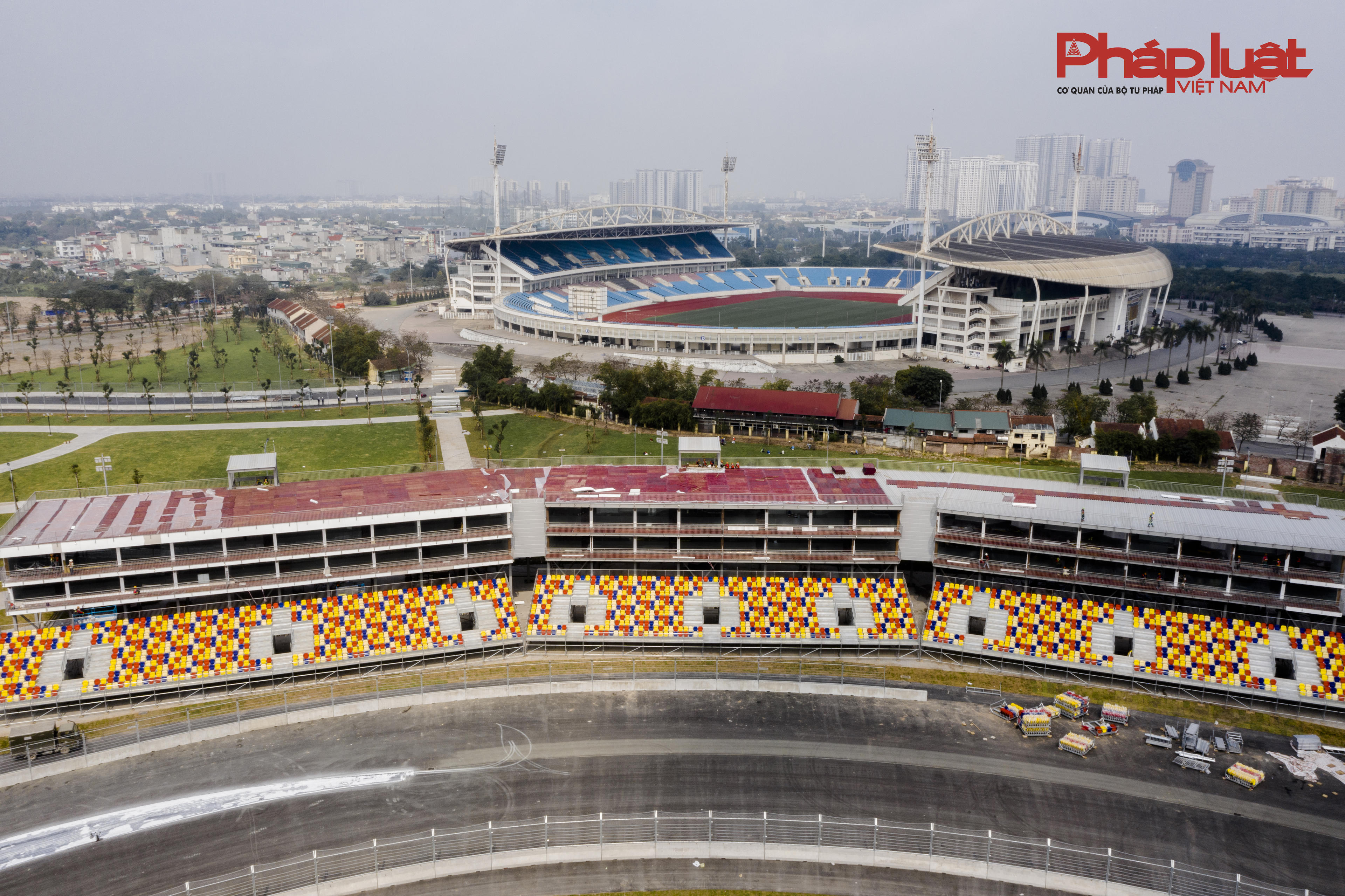 Đơn vị thi công cho biết đang tăng cường nhân lực để hoàn thành các hạng mục tạm, gồm các khán đài, tòa nhà báo chí, rào chắn... để kịp bàn giao vào cuối tháng Ba.