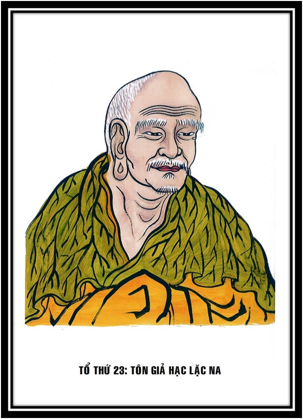 Tổ Hạc Lặc Na (Haklena), sanh sau Đức Phật nhập Niết bàn 843 năm, Ngài dòng Bà La Môn sinh tại nước Nguyệt Chi, cha hiệu Thiên Thắng, mẹ là Kim Quang.