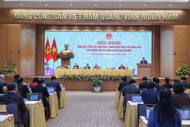 Sáng 8/1, Chính phủ tổ chức Hội nghị trực tuyến toàn quốc với chính quyền địa phương để đánh giá kết quả năm 2025 và triển khai nhiệm vụ năm 2026. Đồng chí Tô Lâm, Tổng Bí thư Ban Chấp hành Trung ương Đảng dự và chỉ đạo Hội nghị.