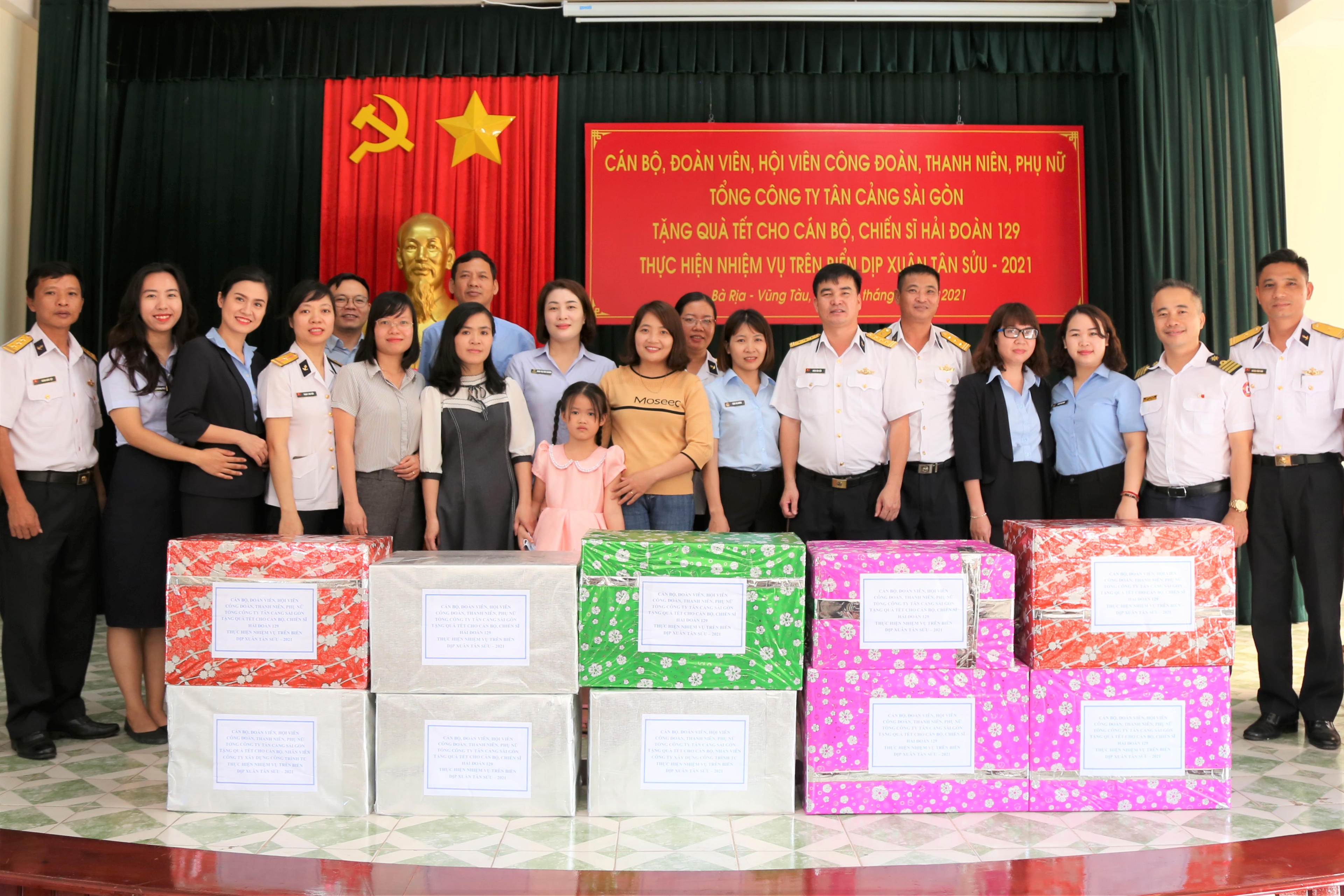 Theo đó, cán bộ, đoàn viên, hội viên thanh niên, phụ nữ, công đoàn Tổng công ty Tân Cảng Sài Gòn đã tự nguyện đóng góp được hơn 600 triệu đồng để tặng quà cho 21 tập thể thuộc các Âu tàu, làng chài, tàu và 275 cá nhân thuộc hải đoàn 128, Hải đoàn 129, Công ty xây dựng công trình Tân Cảng đang thực hiện nhiệm vụ trên biển trong dịp Tết Tân Sửu.