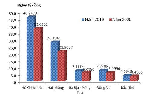 Cũng theo Tổng cục Hải quan, tình hình thu của một số Cục Hải quan tỉnh, thành phố lớn hầu hết đều bị ảnh hưởng, đặc biệt là một số đơn vị có số thu lớn trong ngành như Cục Hải quan TP Hồ Chí Minh thu đạt 38.020 tỷ đồng, đạt 33,06% dự toán và giảm tới 17,79% so với cùng kỳ năm 2019; Cục Hải quan Hải Phòng thu gần 21.501 tỷ đồng, giảm tới 23,74% so với cùng kỳ năm 2019; Cục Hải quan Bắc Ninh thu đạt gần 3.489 tỷ đồng, giảm 13,53% so với cùng kỳ.