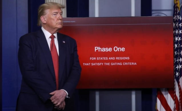 Tổng thống Trump đã nỗ lực để đưa nền kinh tế Mỹ hoạt động trở lại sau khi việc đóng cửa hạn chế lây nhiễm virus corona khiến hàng triệu người Mỹ thất nghiệp. Hơn 20 triệu người đã nộp đơn thất nghiệp tại Mỹ trong tháng vừa qua và hơn 90% đất nước đã được yêu cầu phải ở nhà.