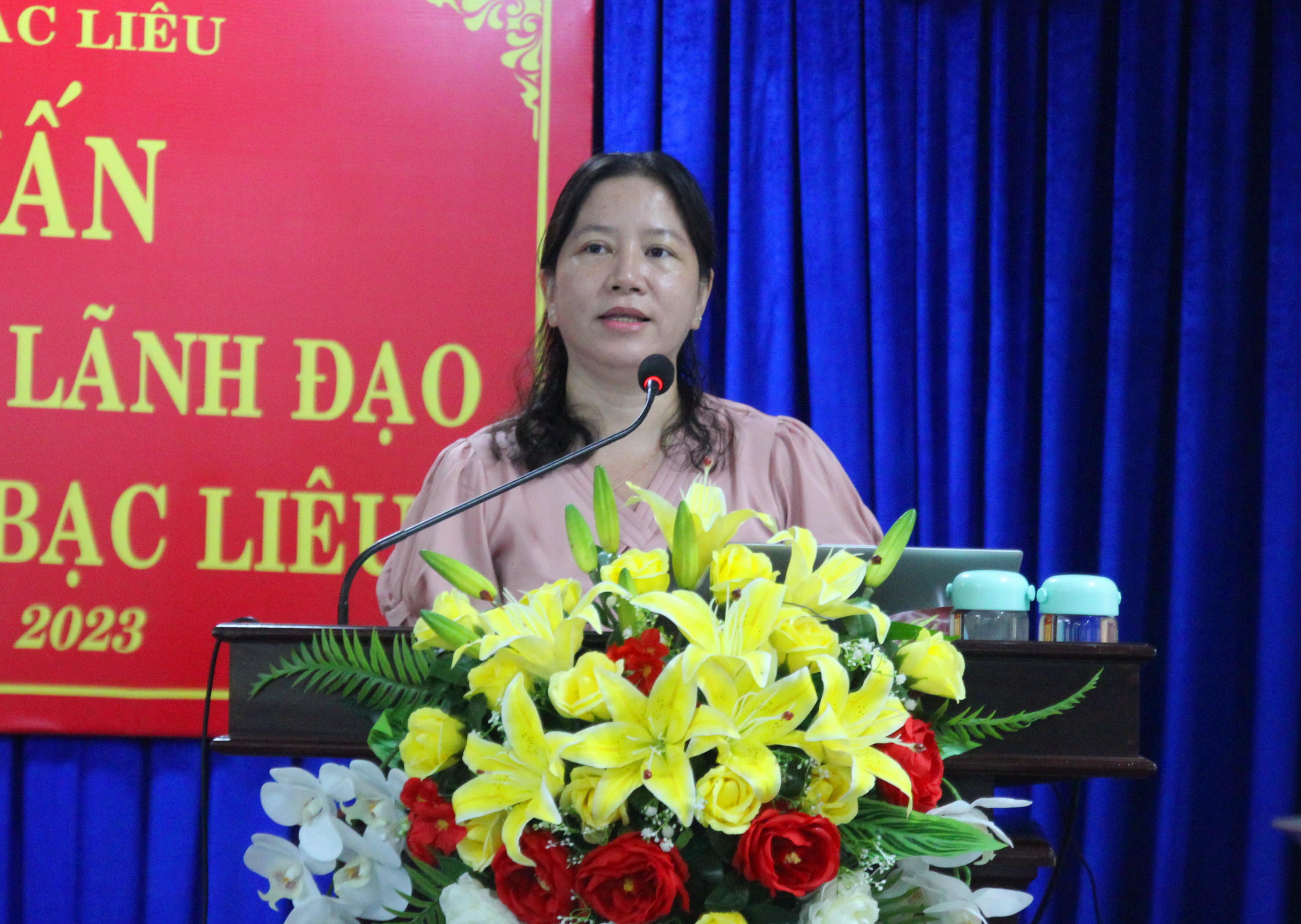 Bà Lê Kim Thúy – Chủ tịch UBND thành phố Bạc Liêu, phát biểu chỉ đạo tại lớp tập huấn. |