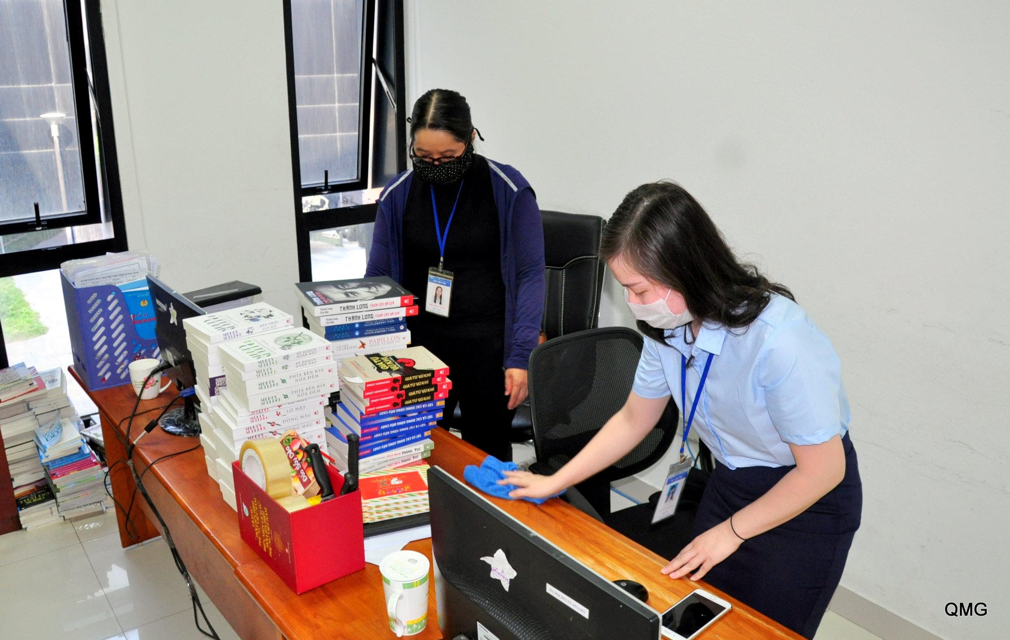 Phó Giám đốc Thư viện tỉnh Nguyễn Thị Thủy cho biết: Mặc dù thứ 2 không phải là ngày Thư viện tỉnh mở cửa đón bạn đọc, nhưng công tác phòng, chống dịch bệnh COVID-19 vẫn được toàn bộ CBCCVC-LĐ thực hiện nghiêm túc bằng nhiều biện pháp, như: Đo thân nhiệt, kiểm tra sức khỏe ban đầu ngay khi đến cơ quan; sử dụng khẩu trang, dung dịch rửa tay sát khuẩn; vệ sinh, khử trùng khu vực làm việc và các không gian phục vụ bạn đọc trong thư viện... Đây đã và sẽ là những công việc được Thư viện tỉnh triển khai thực hiện thường xuyên, liên tục, không gián đoạn, không lơ là, chủ quan.