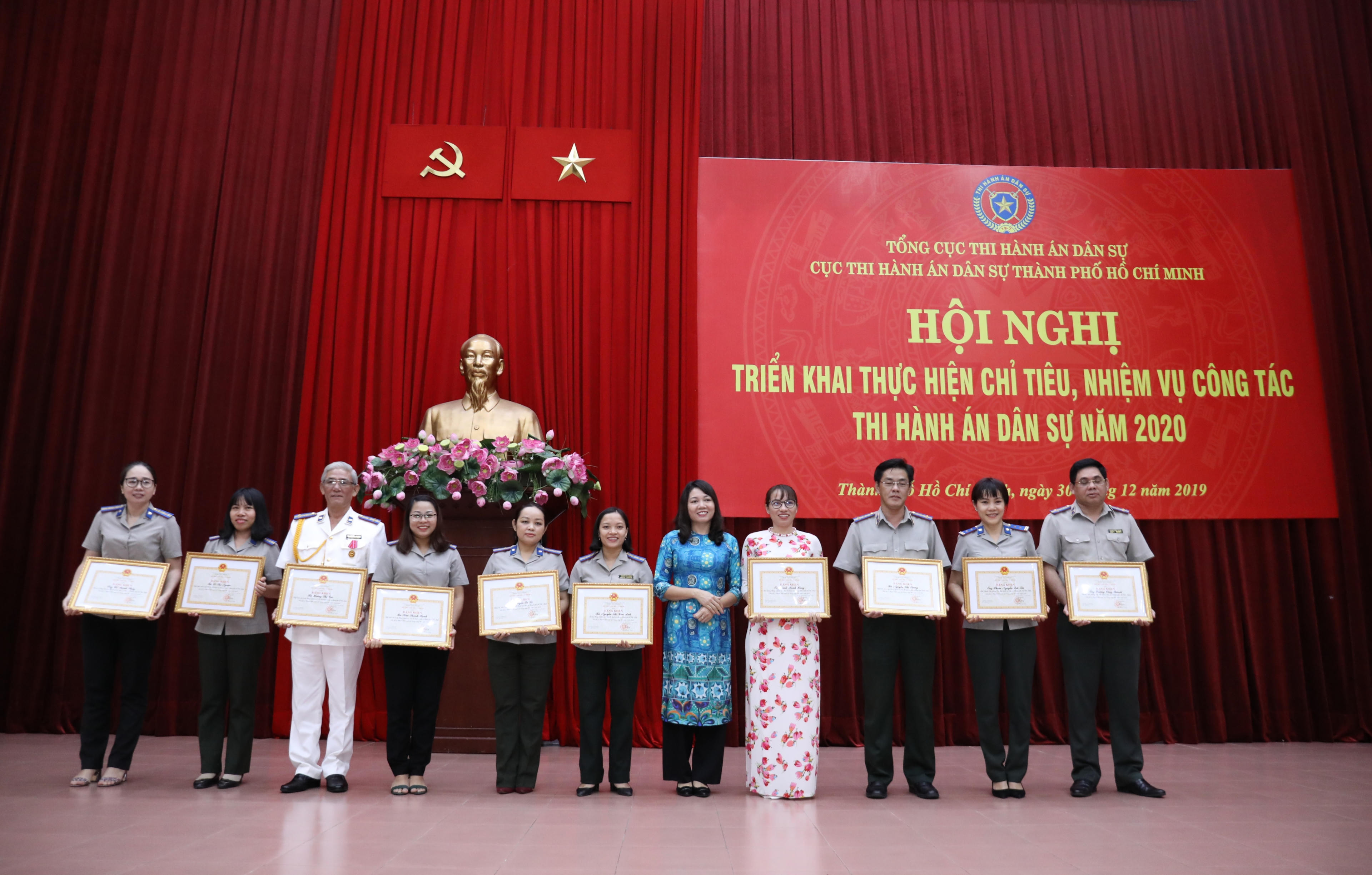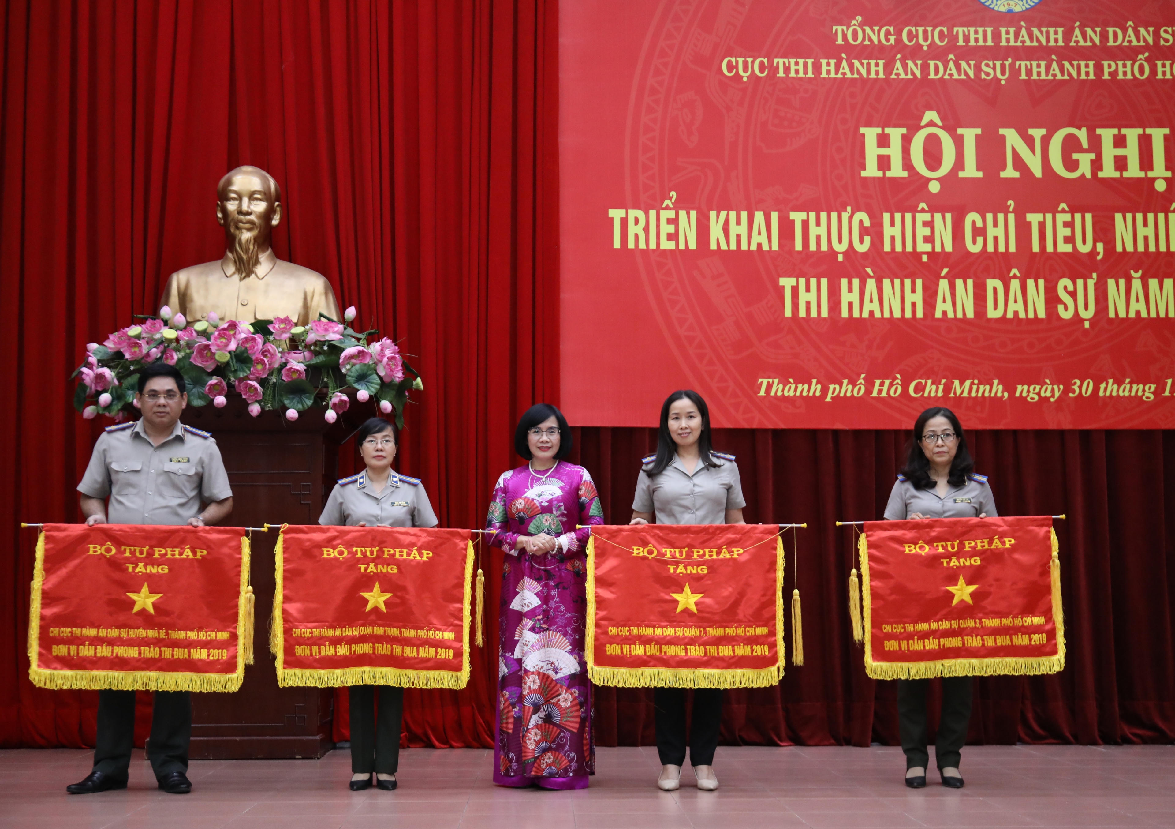 (PLVN) -Ngày 30/12/2019, tại TP.HCM đã diễn ra Hội nghị triển khai thực hiện nhiệm vụ, chỉ tiêu công tác THADS năm 2020 trên địa bàn TP.HCM. Tại Hội nghị, Thứ trưởng Bộ Tư pháp Đặng Hoàng Oanh đã trao tặng Huân chương Lao động hạng Ba, Bằng khen của Thủ tướng Chính phủ và Cờ thi đua Bộ Tư pháp cho tập thể và cá nhân cơ quan THADS TPHCM.