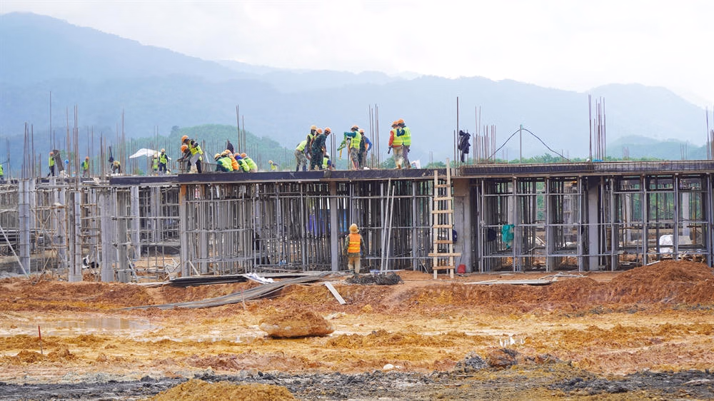 Đến nay, đối với các khối nhà như: Hành chính quản trị, đa chức năng, thư viện, công vụ, bếp ăn… đều hoàn thành gia công lắp dựng cốt thép, xây dựng sàn các tầng, bê tông cột, san nền hạ tầng sân đường và xây dựng hệ thống PCCC… với lũy kế khối lượng đã thực hiện đạt 16% tiến độ theo hợp đồng.