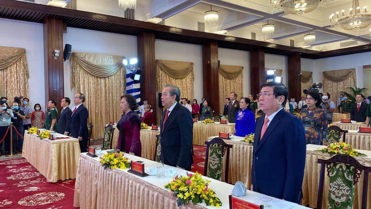 Lễ kỉ niệm 45 năm ngày Thống nhất đất nước tại Hội trường Thống Nhất, TP.HCM được tổ chức trọng thể, ấm áp. Do ảnh hưởng của mùa dịch, lần đầu tiên lễ kỉ niệm được thực hiện thông qua hình thức trực tuyến.