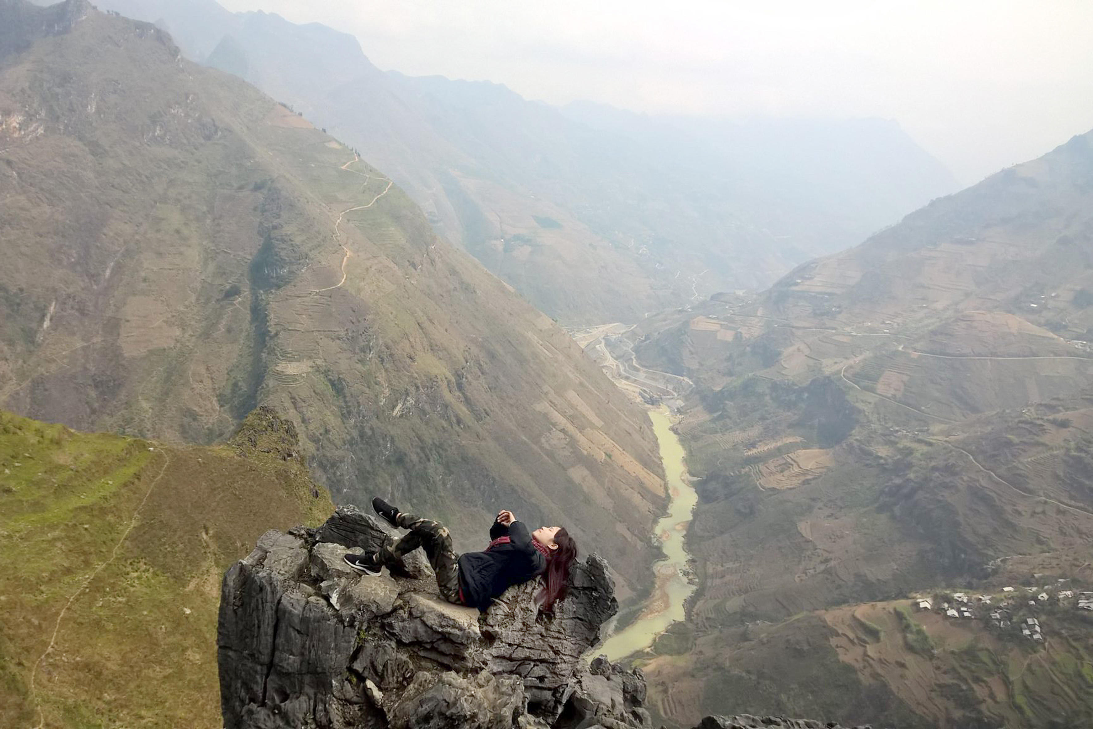 Đứng trên mỏm đá, chúng tôi có cảm giác như đang ở giữa lưng chừng trời, chân đạp mây bay, tóc vờn gió núi. Vào những ngày nắng đẹp trời trong, những gì sương mù che lấp sẽ hiện ra. Đó là thấp thoáng những mái nhà, chòm bản, cả những ruộng lúa, nương ngô và hoạt động bình dị của người dân nơi thâm sơn quỷ cốc.