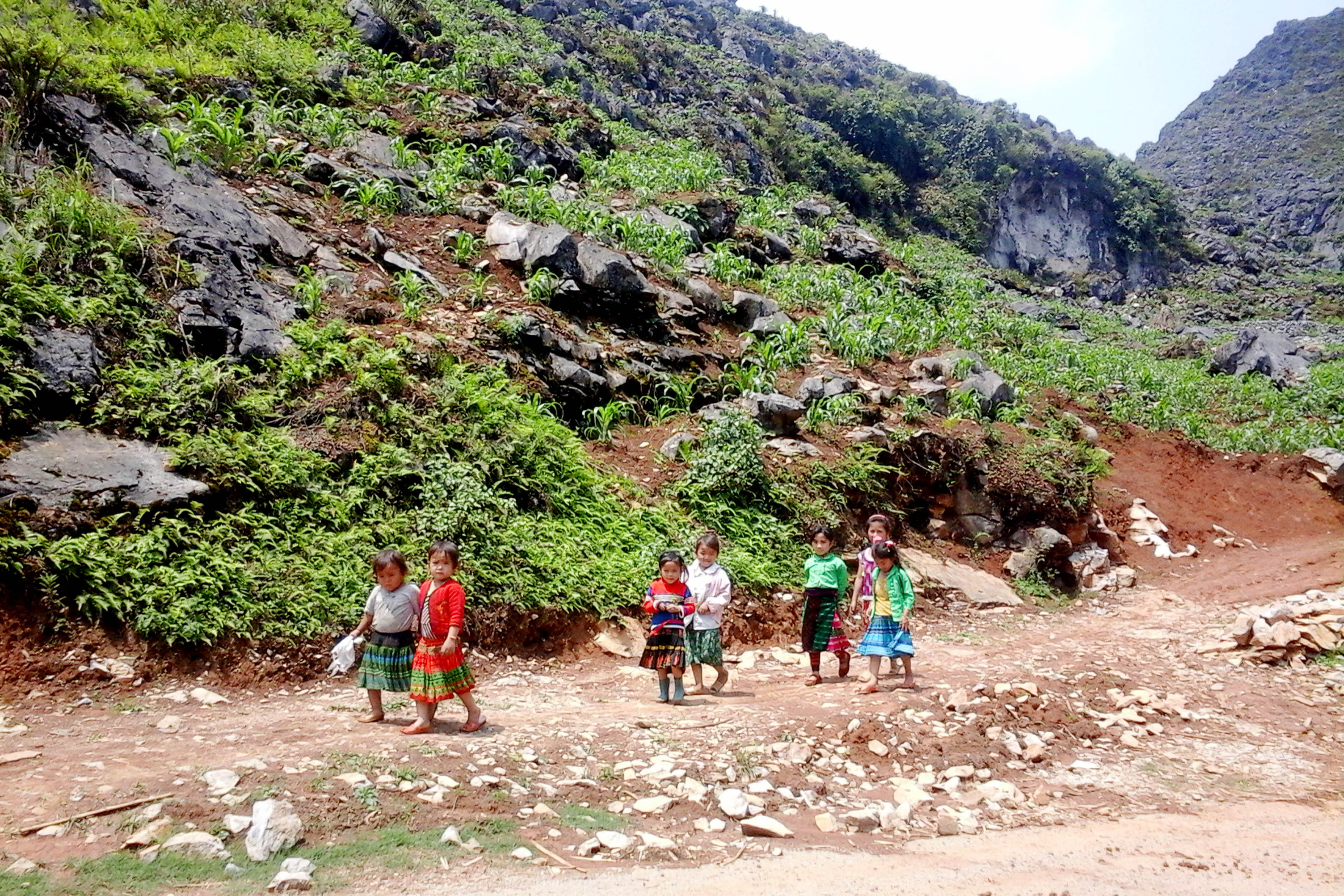 Từ chân đèo, hất mắt nhìn lên phía sườn núi là những đường cong mềm uốn khúc của một con đường đèo, nó mềm mượt, tựa như một dải lụa, kiêu hãnh mà ôm lấy vách đá dựng đứng. Phía trên các ngọn núi là những áng mây phiêu bồng lấp lửng, xen lẫn những ngôi nhà của đồng bào H’Mông.