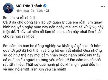 Cụ thể, Trấn Thành đã chia sẻ với người hâm mộ rằng anh sẽ xử lý triệt để những nguồn tin và cá nhân đã bôi nhọ danh dự anh trong thời gian vừa qua: “Em tìm ra rồi nhé!!! Cả 3 đã chủ động liên lạc với quản lý của em rồi!!! Em quay hình nguyên ngày hôm nay nên ngày mai em sẽ xử lý vụ này triệt để. Thấy tui hiền rồi làm tới hen. Lần này phải làm 1 lần cho ra ngô ra khoai”.
