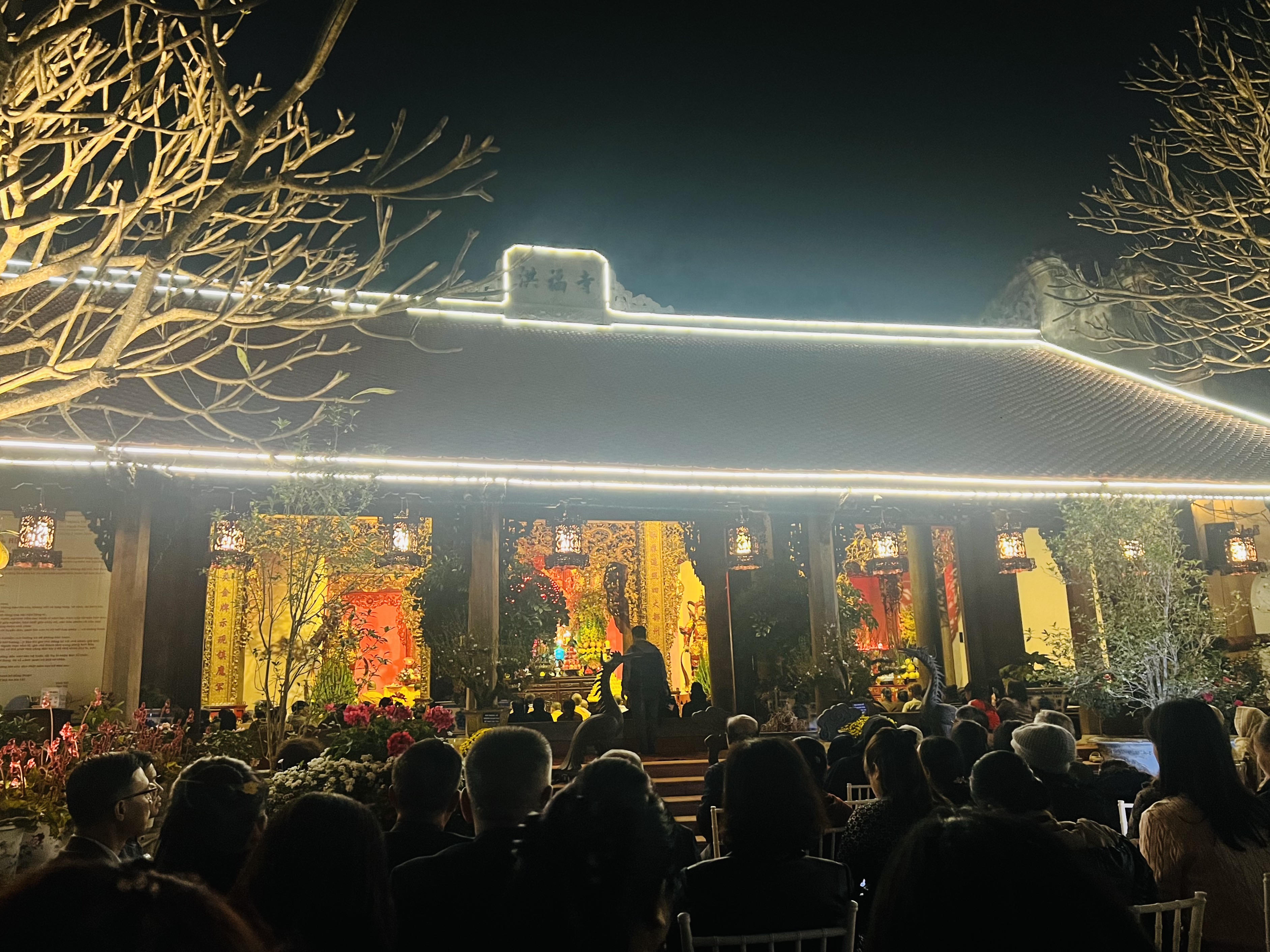 Từ 18h30 cùng ngày, đông đảo Phật tử và người dân đã vân tập về chùa. Buổi lễ được cử hành trang nghiêm theo nghi thức Phật giáo, gồm các nghi lễ dâng hương, tụng kinh, an vị tôn tượng và hồi hướng, diễn ra trong không khí tĩnh lặng của những ngày cuối năm.
