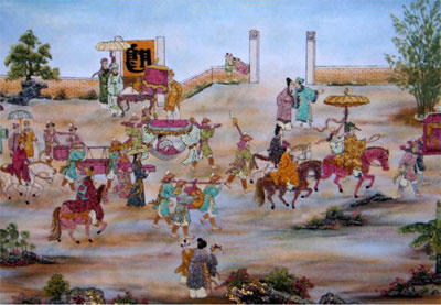 Sứ thần Cao Ly (Triều Tiên) lên tiếng đối trước: "Tùng viện trúc mai, mai sinh ngọc diệp, trúc hóa ngọc chỉ, chí tỷ diệp, diệp tỷ chỉ, chỉ chỉ diệp diệp liên tùng viên, hữu tình nhân thức hữu tình nhân