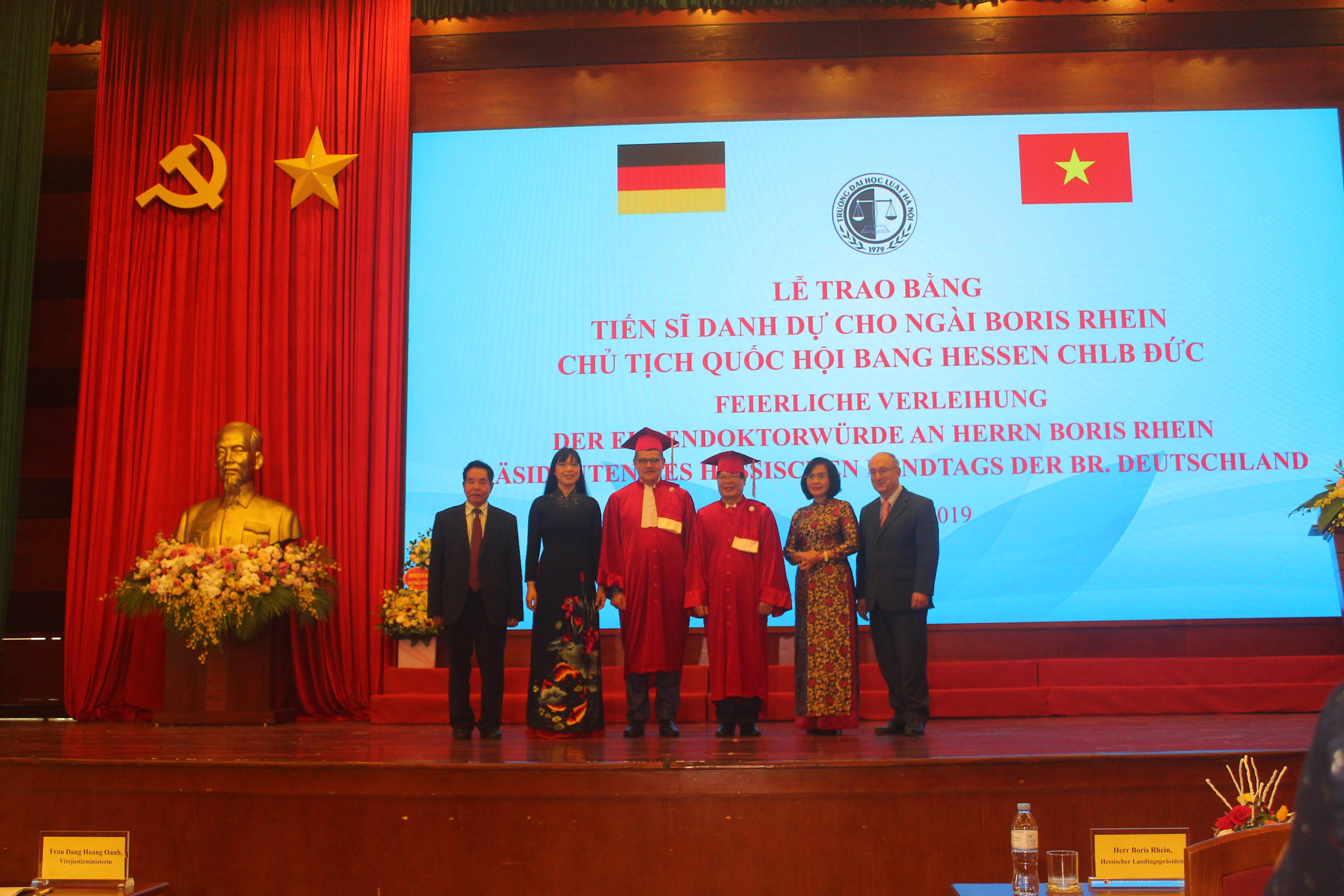 Trên cương vị là Chủ tịch Quốc hội bang Hessen, nguyên Bộ trưởng Bộ Khoa học và Nghệ thuật bang Hessen, nguyên Bộ trưởng Bộ Nội vụ và Thể thao Bang Hessen, Ông Boris Rhein luôn dành tình cảm đặc biệt cho Việt Nam. Ông luôn quan tâm sâu sắc đến việc mở rộng mối quan hệ hữu nghị giữa bang Hessen và Việt Nam; tích cực hỗ trợ việc phát triển Trường Đại học Việt – Đức (VGU); cấp nhiều suất học bổng giá trị cao cho sinh viên có thành tích xuất sắc của Việt Nam, trong đó có nhiều sinh viên của Trường ĐH Luật Hà Nội.