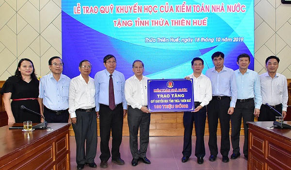 Chiều cùng ngày, tại trụ sở UBND tỉnh, đồng chí Hồ Đức Phớc, Tổng kiểm toán Nhà nước cùng Đoàn công tác đã trao tặng 100 triệu đồng cho Quỹ khuyến học tỉnh Thừa Thiên Huế.