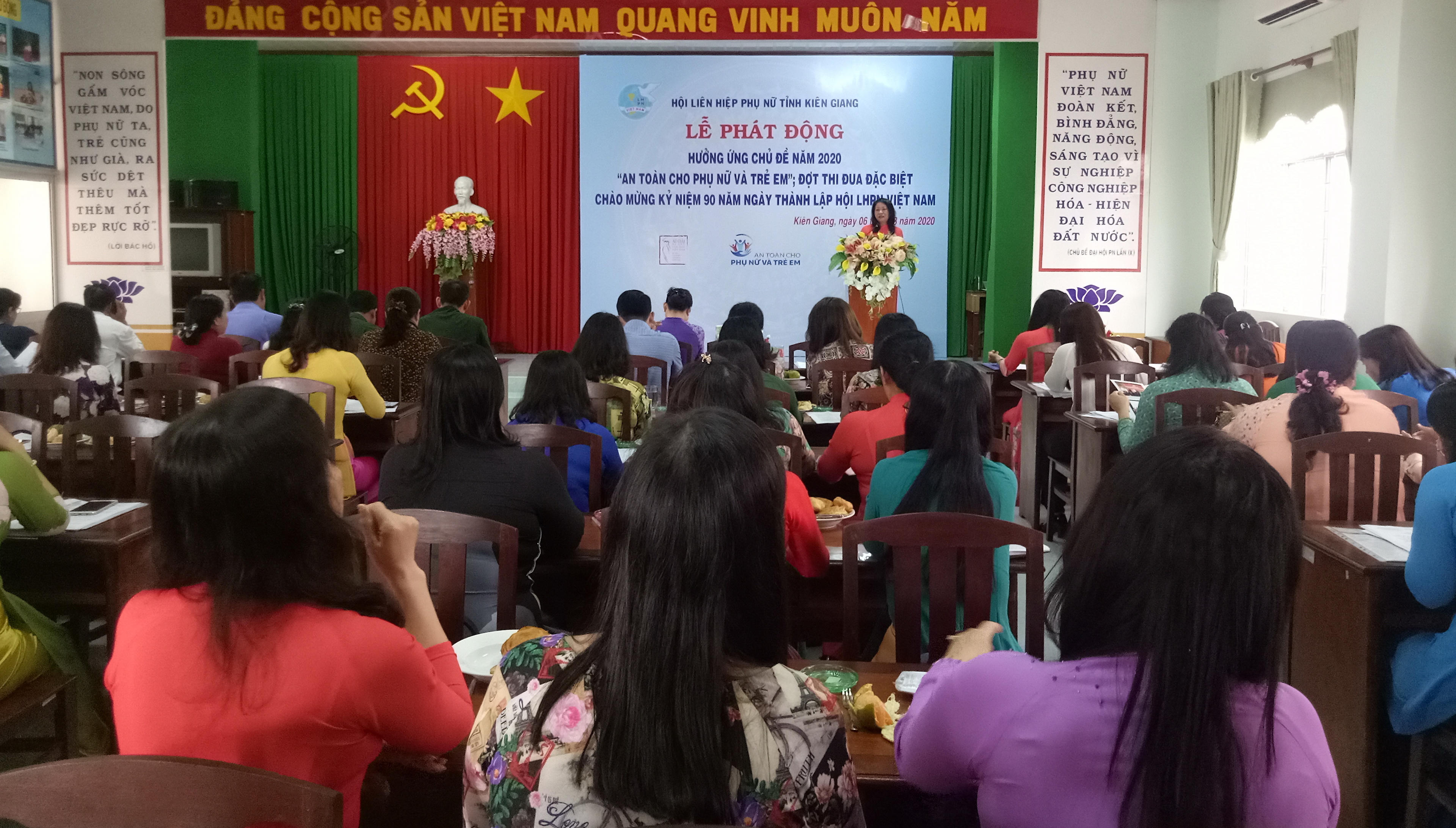 (PLVN) - Ngày 6/3, Hội Liên hiệp Phụ nữ tỉnh Kiên Giang diễn ra lễ phát động chủ đề năm 2020 “An toàn cho phụ nữ và trẻ em” và hưởng ứng đợt thi đua đặc biệt kỷ niệm 90 năm thành lập Hội LHPN Việt Nam.