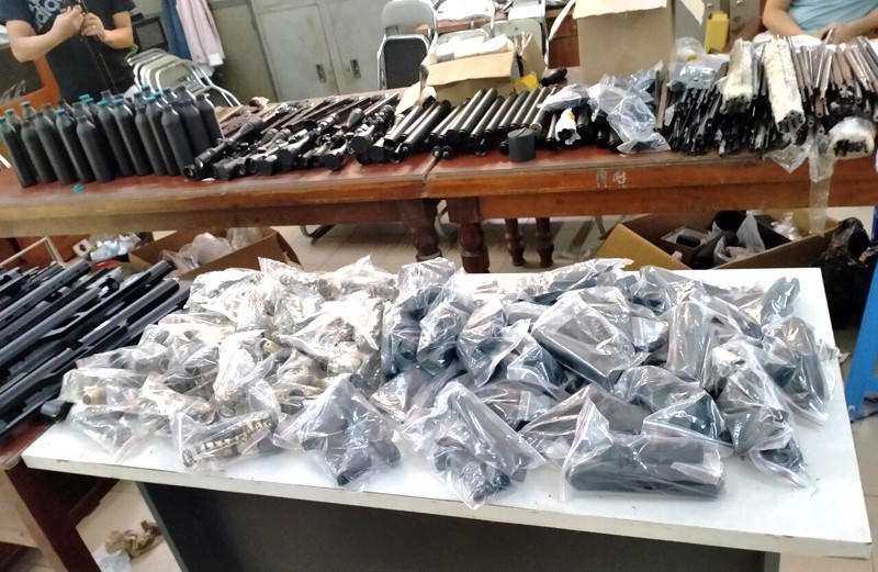 Bằng các biện pháp nghiệp vụ, công an huyện Thanh Oai đã thu giữ hàng trăm linh kiện, thiết bị, súng thể thao tự chế được các đối tượng tàng trữ, cất giấu trong nhà của các đối tượng. Mặc dù không phải súng quân dụng, nhưng tính sát thương của những loại vũ khí này rất lớn.