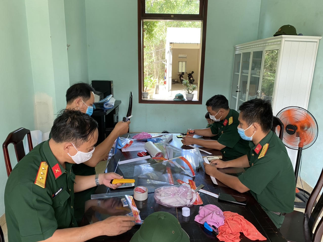 Bên cạnh đó, Trung đoàn 6 cũng đã huy động các cán bộ, chiến sĩ trực tại đơn vị tranh thủ ngày nghỉ, giờ nghỉ tập trung sản xuất ra hàng ngàn chiếc mũ chống giọt bắn để trang bị cho cán bộ, chiến sĩ trong Trung đoàn sử dụng khi làm nhiệm vụ. Đồng thời, Trung đoàn cũng cử cán bộ trực tiếp đến các khu cách ly công dân, các điểm chốt y tế trên địa bàn toàn tỉnh để trao tặng cho các lực lượng đang thực hiện nhiệm vụ tại đây.