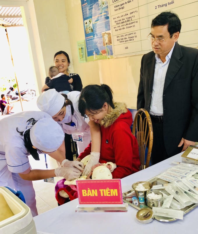 Công tác tiêm chủng mở rộng cũng được duy trì. Việc thực hiện tiêm chủng luôn đúng quy định, không có tai biến sau tiêm chủng. Số trẻ dưới 1 tuổi được tiêm chủng đầy đủ 8 loại vắc xin đạt 86%. Phụ nữ có thai được tiêm đủ liều vắc xin phòng uốn ván sơ sinh đạt 98%. Đặc biệt, việc tiêm vắc xin phòng viêm gan B 24h sau sinh cho trẻ sơ sinh đạt tới 91%.