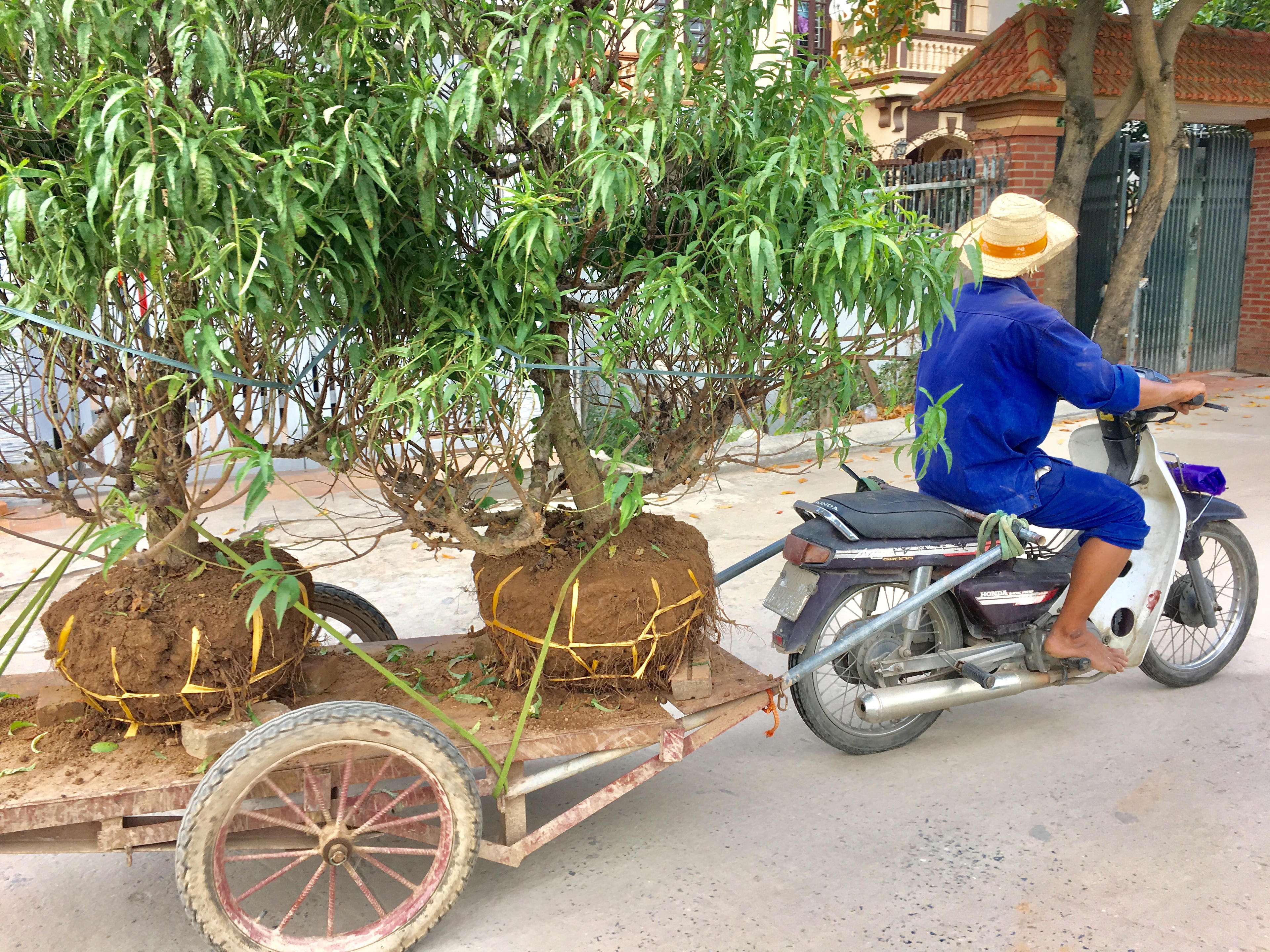 Vừa cắm cúi tuốt lá, bác Dần vừa tâm sự, thời điểm này bắt đầu vào thời điểm tuốt lá, thời gian phải tuốt xong hết trong vòng 3-5 ngày để kịp cho hoa nở đúng vào dịp Tết. “Mỗi năm chỉ cần hoa nở trúng Tết 50% là đã đủ ấm Tết rồi cháu. Mỗi ngày gia đình bác đều phải thuê 2-3 nhân công với chi phí 400 nghìn đồng/người/ngày. Đối tượng chủ yếu là khách lẻ ở Hà Nội. Với những gốc đào thông, đào thế thường dành cho khách quen. Tết năm ngoái gia đình bác cho thuê 8 -10 triệu đồng/gốc”- bác Dần chia sẻ.