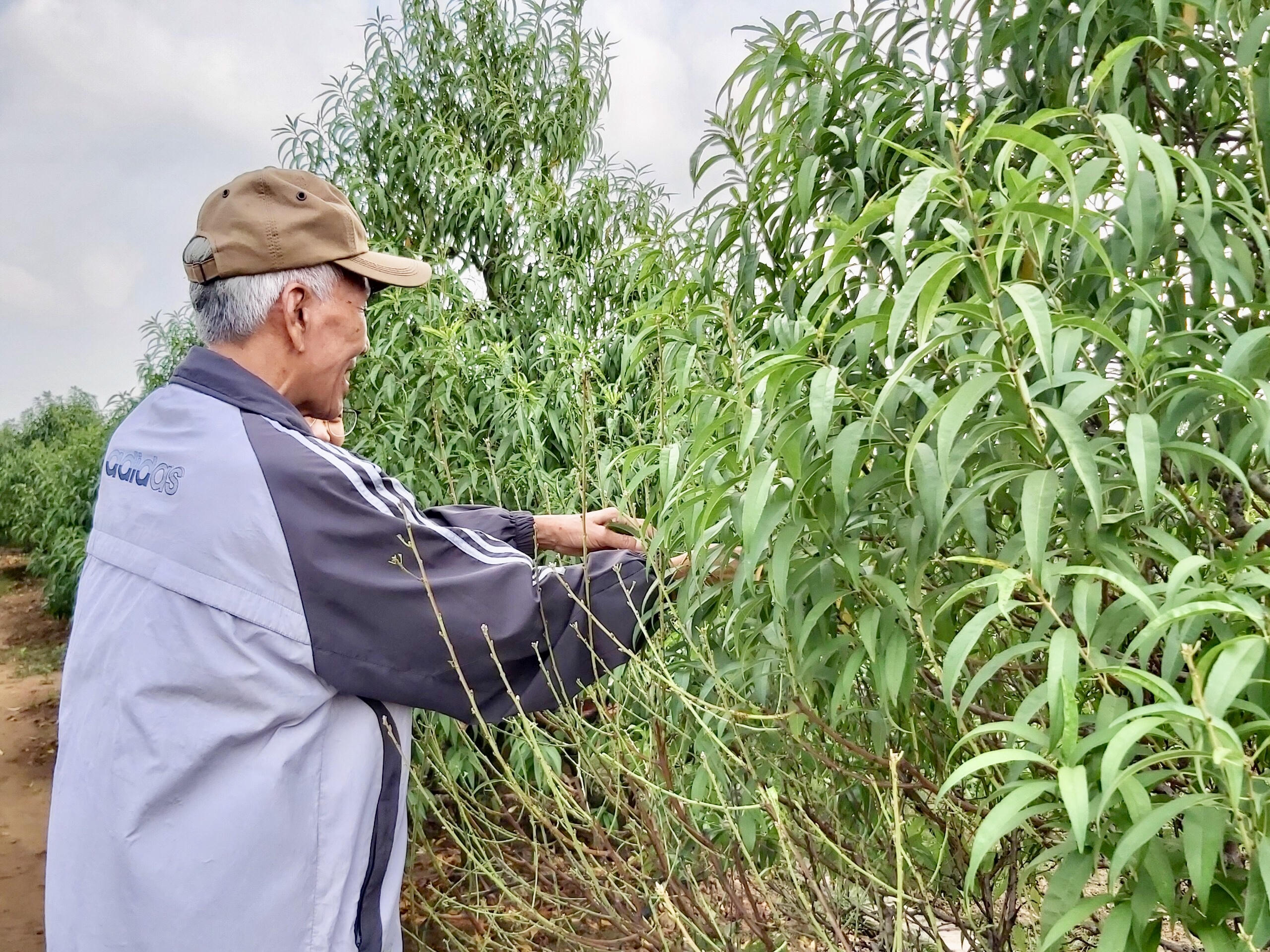 Trò chuyện với gia đình bác Nguyễn Văn Dần (72 tuổi) – một người làm nghề trồng đào lâu năm ở phường Nhật Tân, vườn đào chỉ khiêm tốn với diện tích 300m2, có tất cả 120 gốc các loại, đào thông, đào thế, đào cành. Những gốc đào này đã xuất hiện rất nhiều mắt đào, đây là thời điểm thích hợp để chăm sóc, tuốt lá, chuyển gốc vào chậu… để kịp phục vụ cho dịp Tết Nguyên đán Canh Tý 2020.