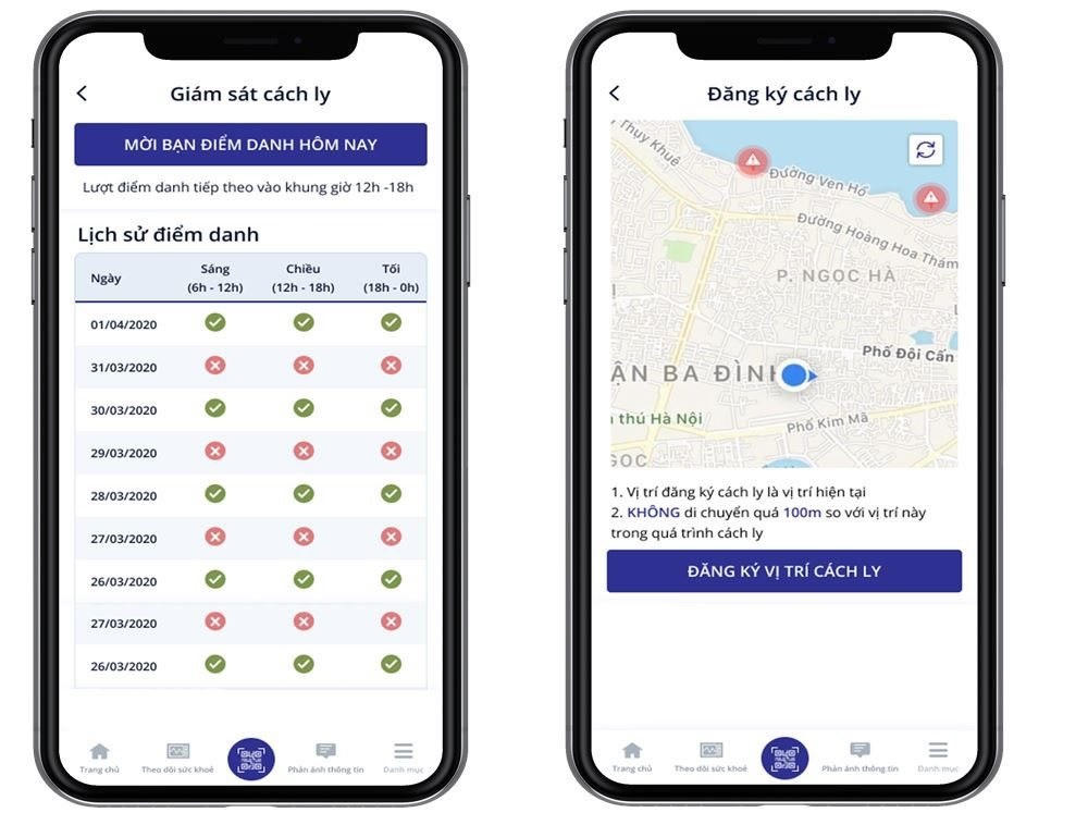 Trong tính năng “Giám sát cách ly” được đưa lên ứng dụng NCOVI từ hôm nay - 2/4/2020, người được cách ly cần đăng ký bằng nhận diện khuôn mặt; đăng ký vị trí cách ly - có thêm cảnh báo nếu di chuyển quá 100m so với vị trị cách ly; thực hiện điểm danh hàng ngày bằng nhận diện khuôn mặt và được lưu lại trong Lịch sử điểm danh trên ứng dụng NCOVI.