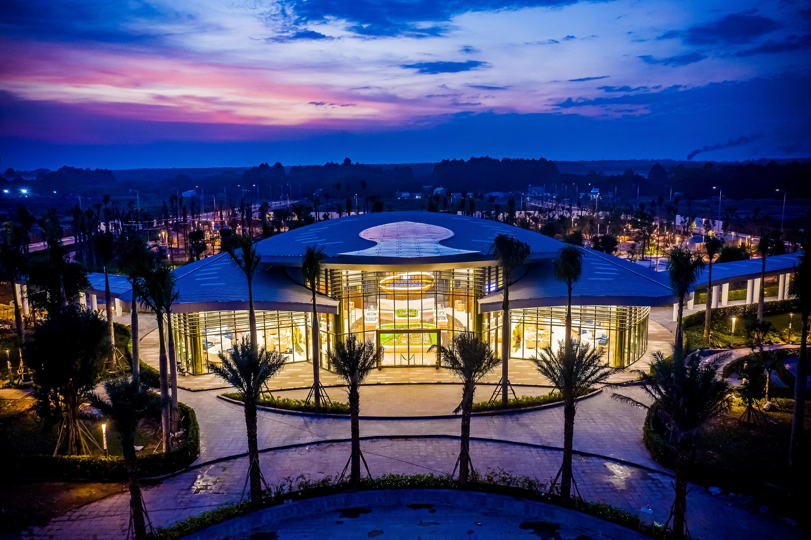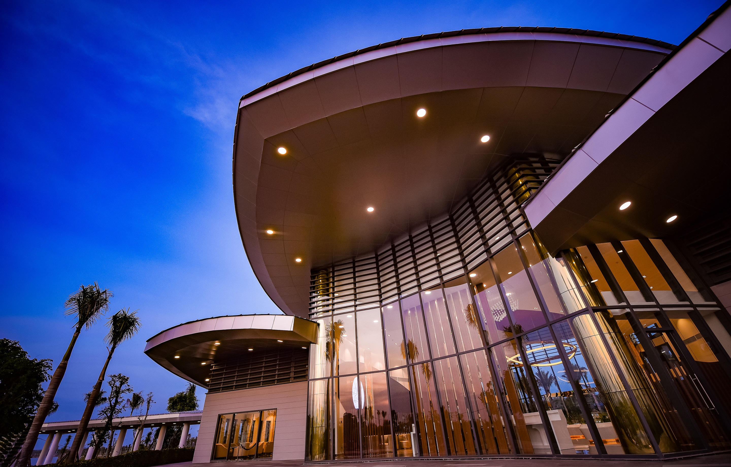 Lấy cảm hứng từ không gian vũ trụ, tổng thể công trình có thiết kế sáng tạo như hình dáng cánh chim đang sải cánh, được kết hợp tinh tế giữa kính và các hình khối xếp chồng lên nhau. Bước chân vào bên trong nhà điều hành, người xem ngay lập tức bị cuốn hút bởi tất cả hệ thống sàn, tường bằng đá kết hợp công trình nghệ thuật gỗ bao quanh lấy những chùm đèn cao lộng lẫy… tạo nên một không gian ấm cúng, sang trọng.