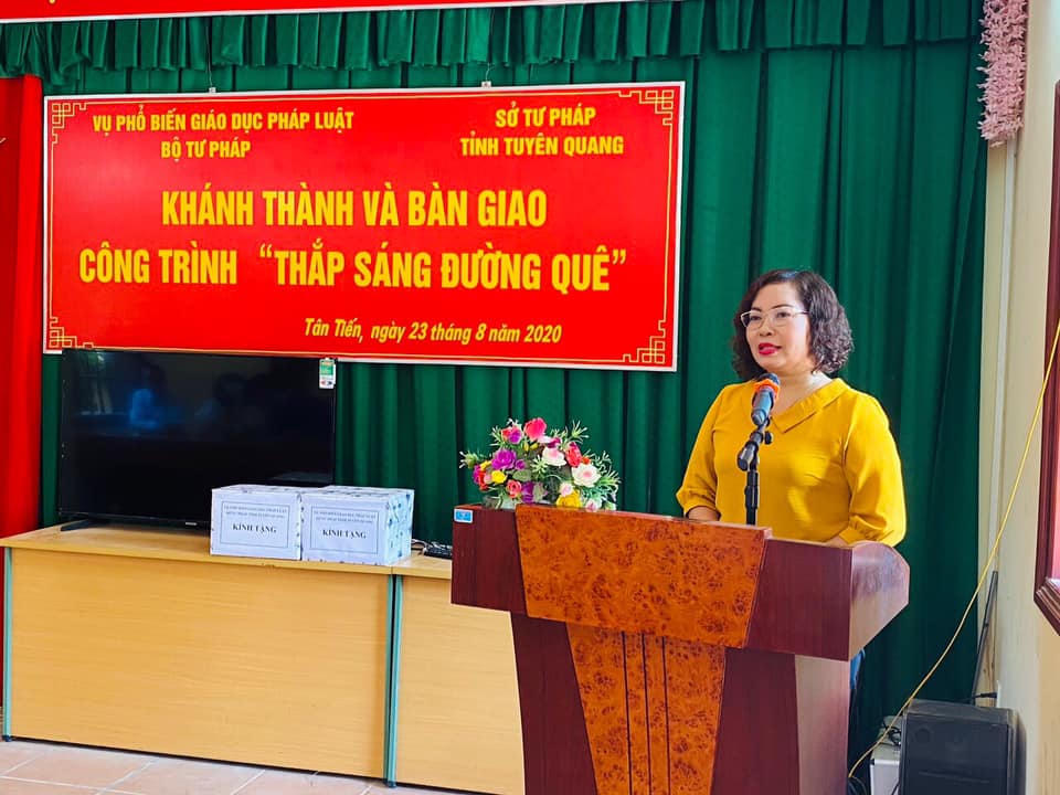 (PLVN) -Ngày 23/8/2020, Vụ Phổ biến, giáo dục pháp luật (Bộ Tư pháp) và Sở Tư pháp Tuyên Quang đã phối hợp tổ chức Khánh thành và bàn giao Công trình nông thôn mới “ Đường điện thắp sáng đường quê” tại Tuyên Quang.