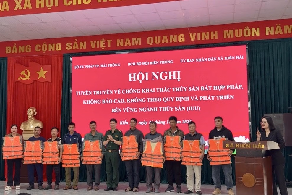 (PLVN) - Ngày 31/10, tại xã Kiến Hải, Sở Tư pháp thành phố Hải Phòng phối hợp với Ban Chỉ huy Bộ đội Biên phòng thành phố và Ủy ban nhân dân xã Kiến Hải tổ chức Hội nghị tuyên truyền chống khai thác thủy sản bất hợp pháp, không báo cáo, không theo quy định và phát triển bền vững ngành thủy sản (IUU).