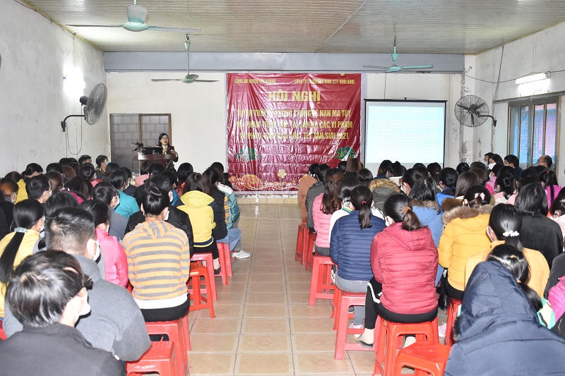 (PLVN) - Ngày 12/1, Công an huyện Yên Khánh, Phòng Xây dựng phong trào bảo vệ ANTQ Công an tỉnh Ninh Bình phối hợp với Công ty may 27.7 tổ chức tuyên truyền phòng chống tệ nạn ma tuý, trộm cắp tài sản và các vi phạm về pháo, đảm bảo ANTT Tết Nguyên đán Tân Sửu 2021.