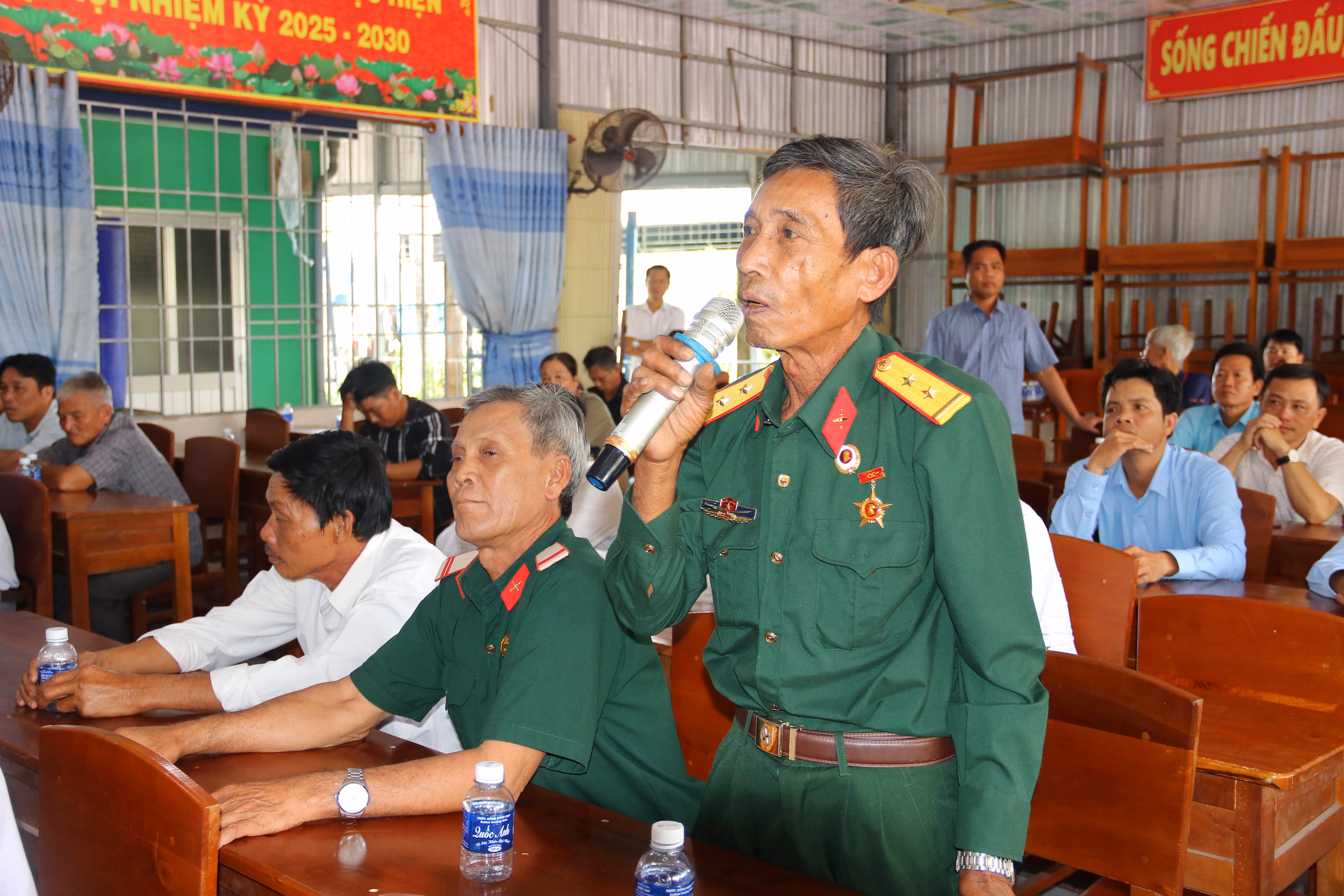 Thay mặt các ứng cử viên ĐBQH khóa XVI, Đại tá Hồ Việt Triều nghiêm túc tiếp thu, ghi nhận đầy đủ các ý kiến, kiến nghị của cử tri.