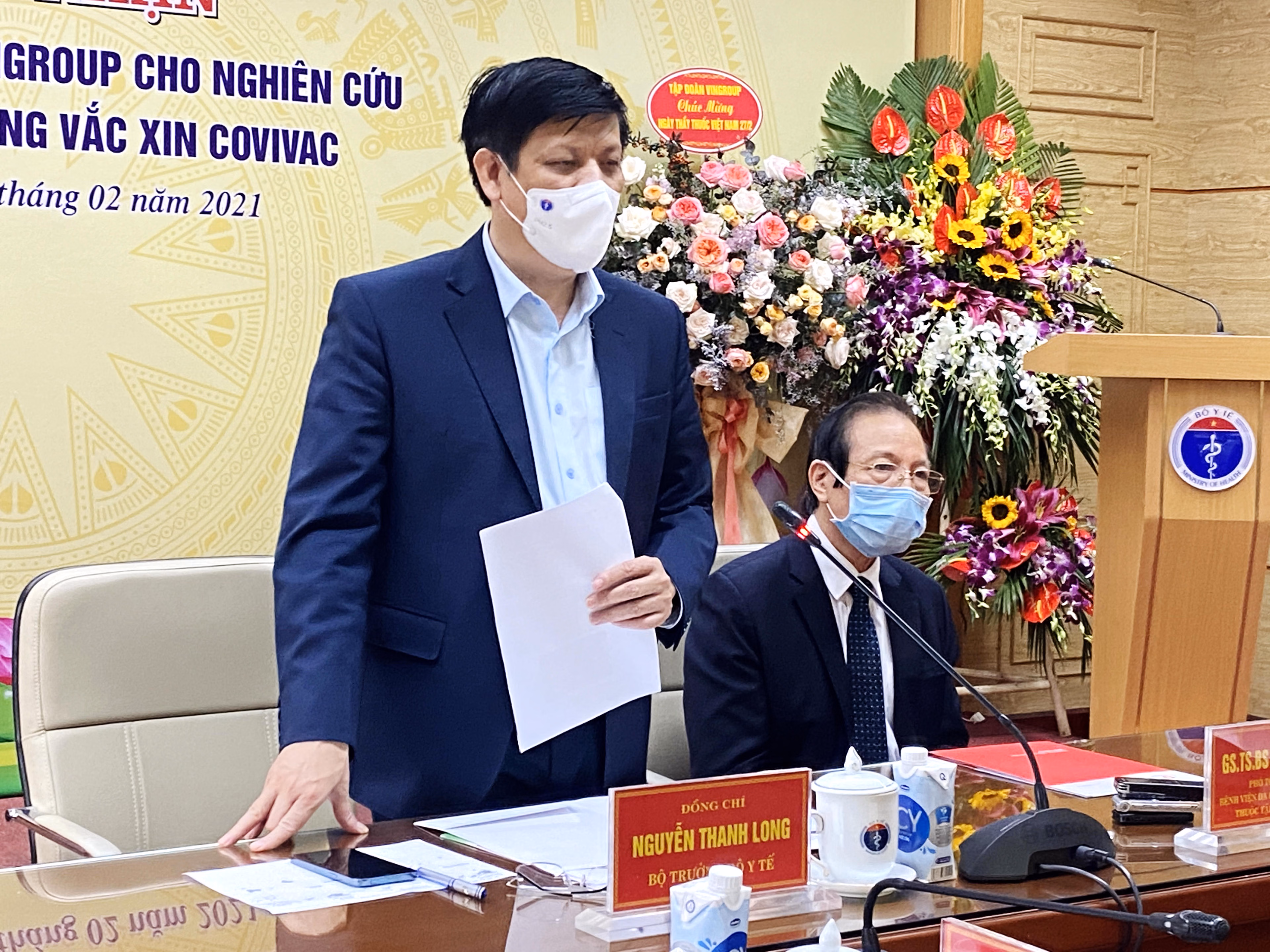 Phát biểu tại buổi lễ tiếp nhận, Bộ trưởng Bộ Y tế Nguyễn Thanh Long nhấn mạnh: “Nhân dịp hôm nay là ngày kỷ niệm 66 năm Ngày Thầy thuốc Việt Nam (27/2/1955 – 27/2/2021), tôi đánh giá sự kiện này là một hoạt động ý nghĩa giúp thúc đẩy nhanh quá trình thử nghiệm lâm sàng của loại vắc xin phòng ngừa Covid-19 “Made in Vietnam”. Từ đó, Việt Nam có thêm nhiều cơ hội đánh giá khoa học một cách đầy đủ, toàn diện để khẳng định tính khả thi của vắc xin COVIVAC đạt hiệu quả, có tính an toàn và hiệu quả.