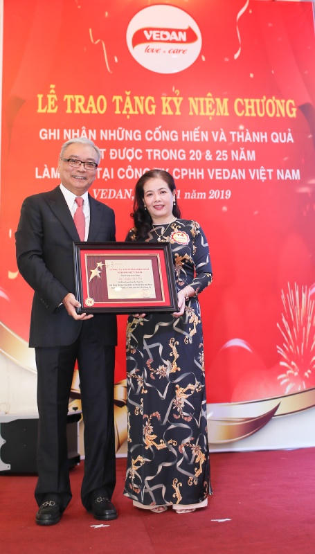 Tháng 11/2019, Vedan Việt Nam long trọng tổ chức Lễ trao kỷ niệm chương cho gần 300 cán bộ - công nhân viên có thâm niên công tác 20 và 25 năm. Sự kiện này tạo nên một dấu ấn đặc biệt: Công ty Vedan Việt Nam có tổng số 1.000 người lao động gắn bó với công ty trên 20 năm. Điều gì đã giúp cho Vedan Việt Nam tạo được kỳ tích này.