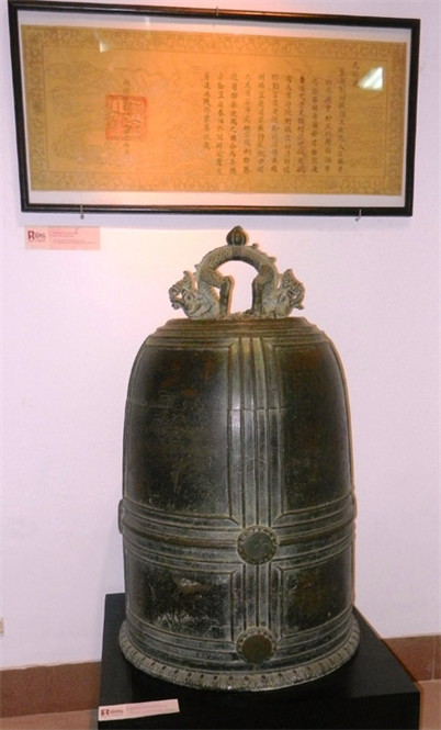 Dịch nghĩa: “Vào ngày 20 tháng 3 năm Mậu Dần, niên hiệu Trinh Nguyên (niên hiệu vua Đức Tông của nhà Đường, trị vì từ năm 785 đến năm 810) thứ 14 (tức năm 798 dương lịch), 53 người trong hội tùy hỷ (một tổ chức phật giáo đương thời) cùng đúc một quả chuông đồng hết 90 cân lưu truyền cúng lễ”.