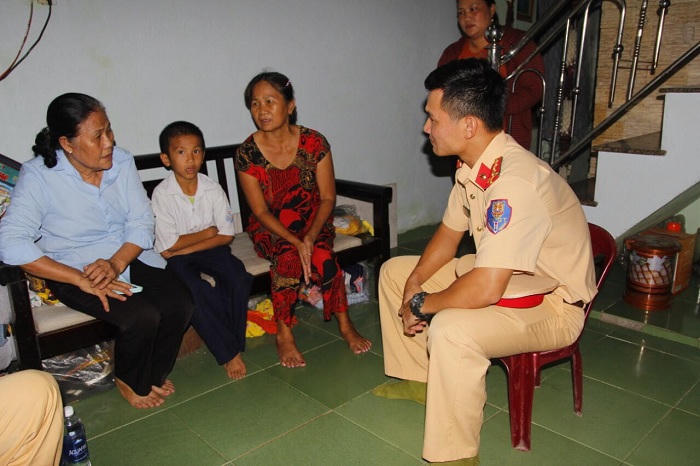 Hoàn cảnh em Huy hết sức khó khăn, mẹ bỏ đi lúc em được 1 tuổi, bố làm nghề đạp xích lô, em rất ham học nhưng lại không có điều kiện để đi học. Cảm thông và chia sẻ với hoàn cảnh của em, Chi đoàn Thanh niên Phòng Cảnh sát giao thông đã hỗ trợ em số tiền 1 triệu đồng/quý nhằm động viên em Huy vượt qua khó khăn, nâng bước em đến trường.