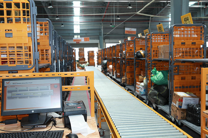 Bên cạnh đó, Vietnam Post còn trang bị các dụng cụ tối ưu cho hoạt động sản xuất (xe lồng lưới, xe nâng…); cùng các thiết bị phục vụ công tác giám sát, điều hành sản xuất như hệ thống camera giám sát, hệ thống âm thanh thông báo, hệ thống thiết bị hỗ trợ đảm bảo an toàn, an ninh cho sản xuất và công tác chia chọn, lưu thoát sản phẩm.